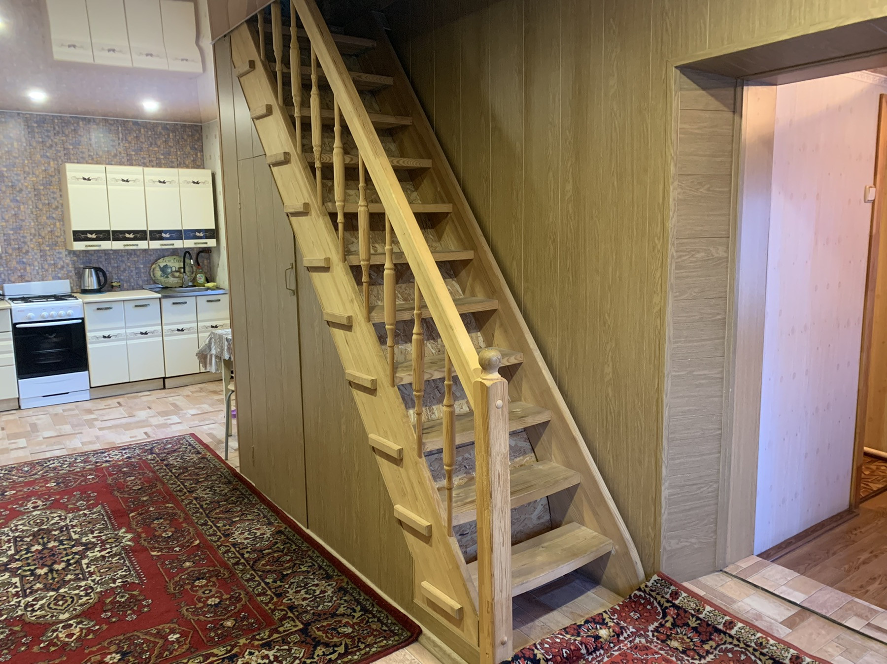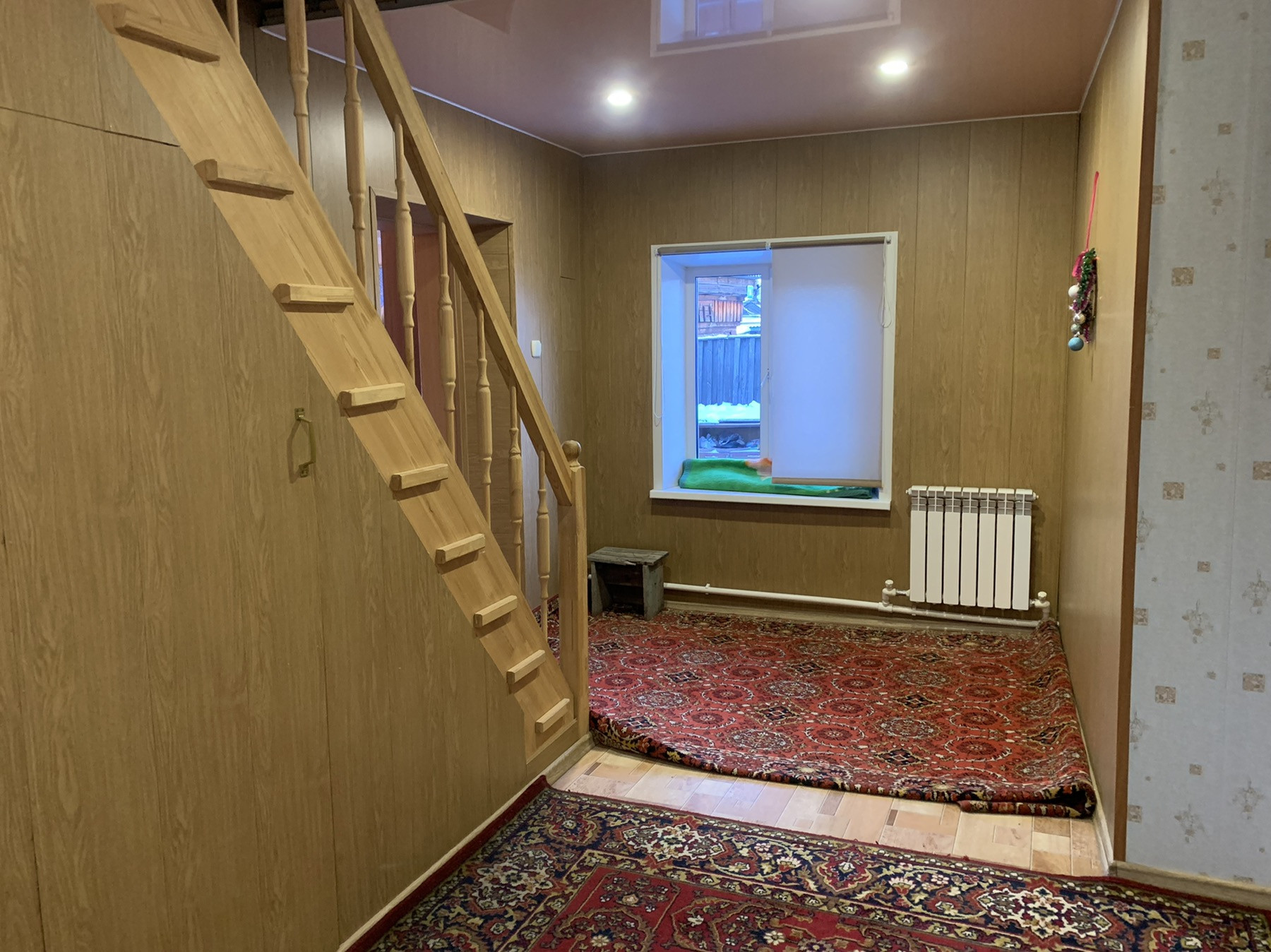 Первый этаж: кухня-гостиная, комната отдыха, зал, просторный коридор, ванная комната, кладовая под лестницей, произведен ремонт натяжные потолки, пластиковые окна, на стенах качественные обои, новые батареи.