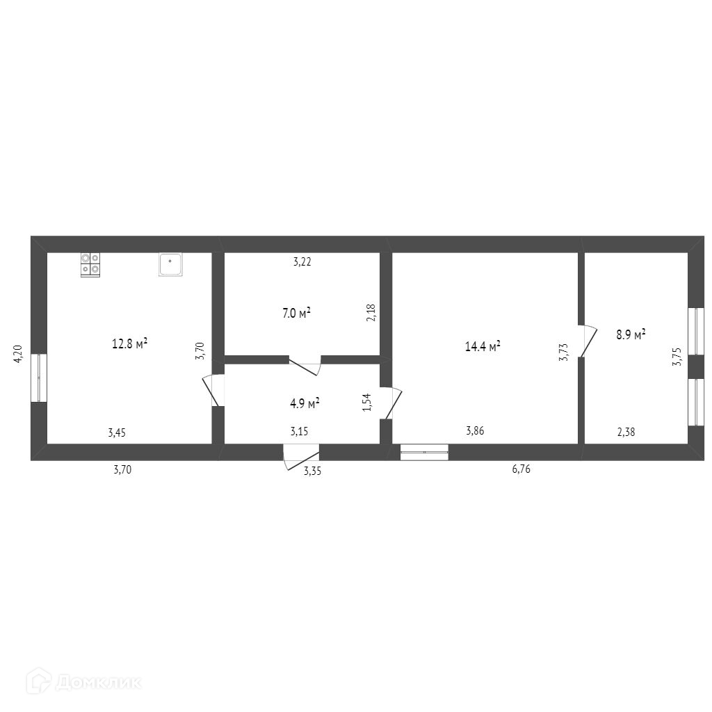 1-этажный дом, 47.6 м2, на продажу в Ишиме, Кооперативная улица