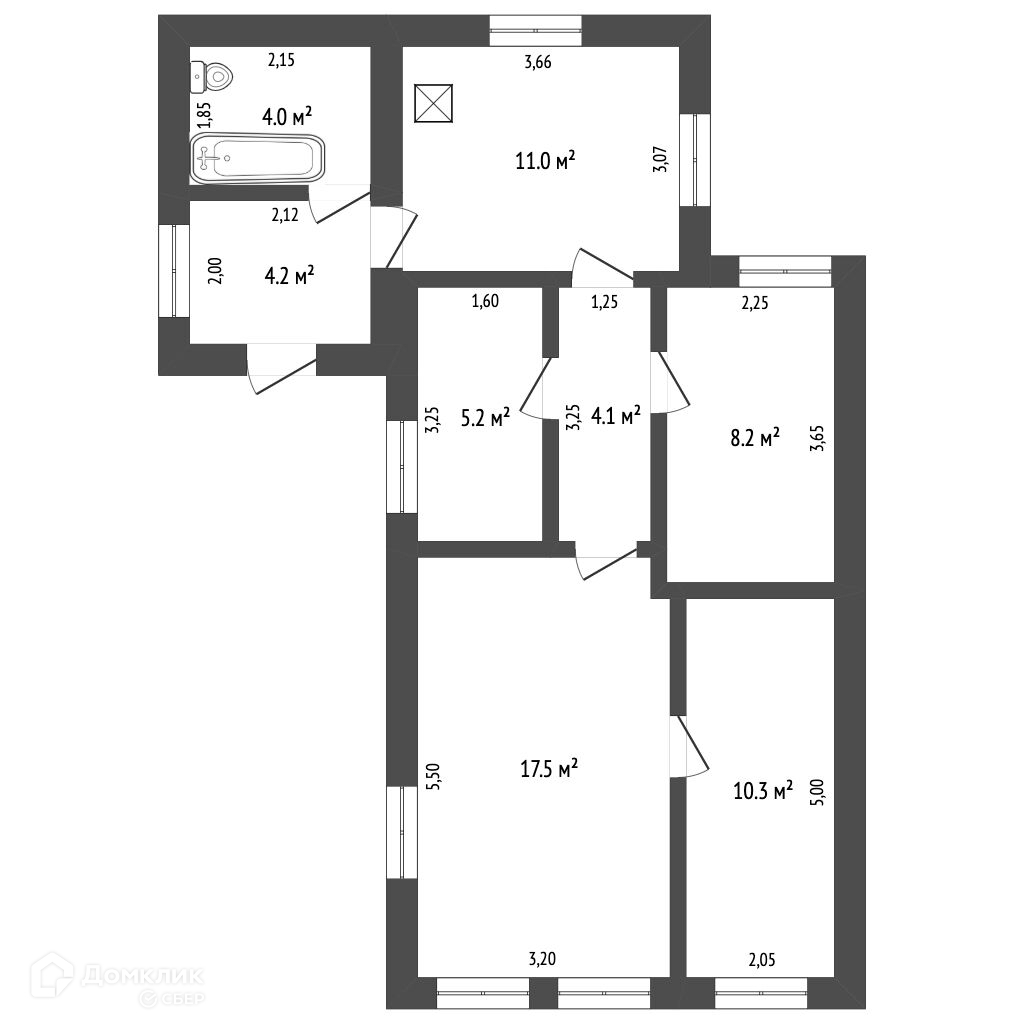 Общая площадь 64.5 м2