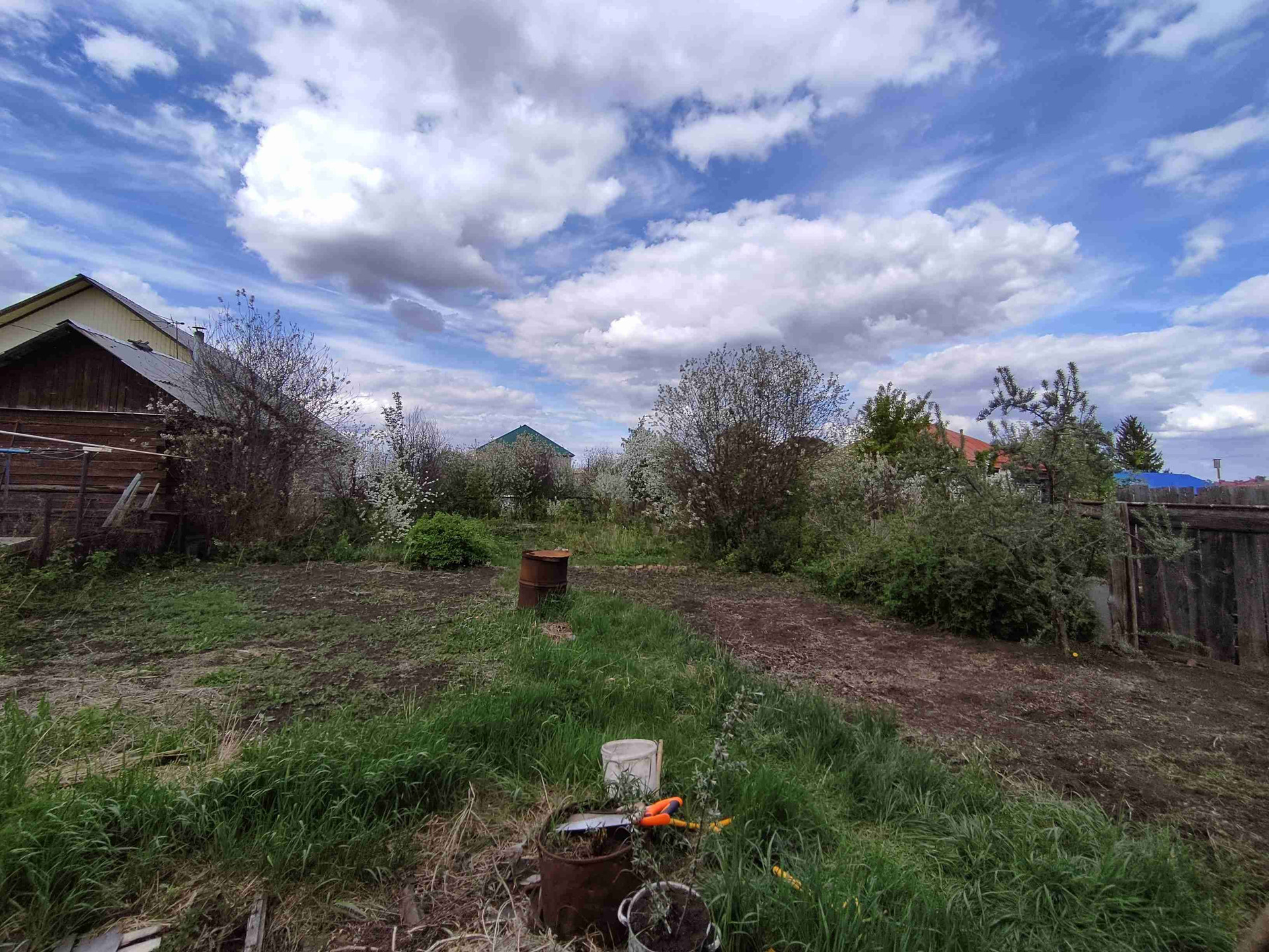 Место высокое, земельный участок 5.8 соток, огород разработан, проведен летний  водопровод; посажены плодово-ягодные культуры.