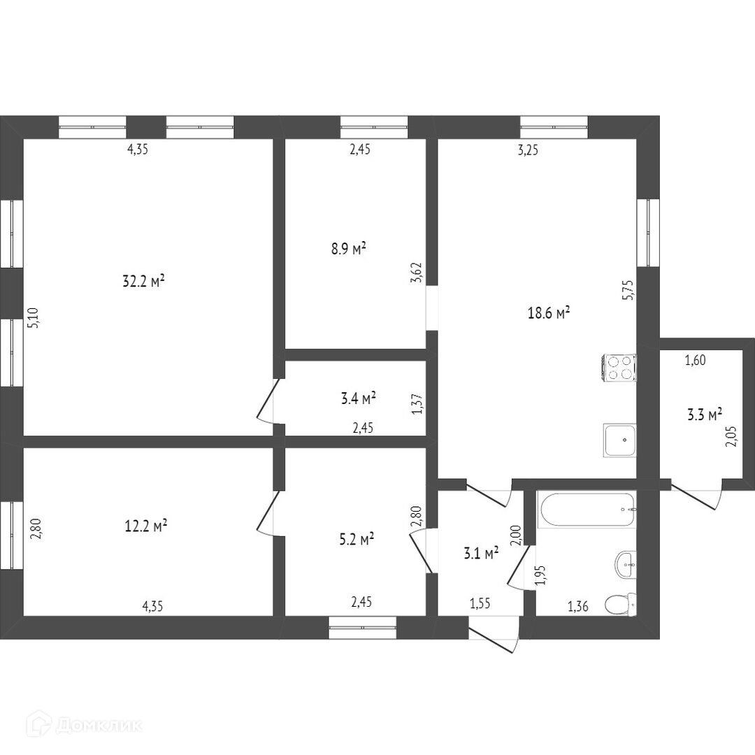 Общая площадь 78.1 м2