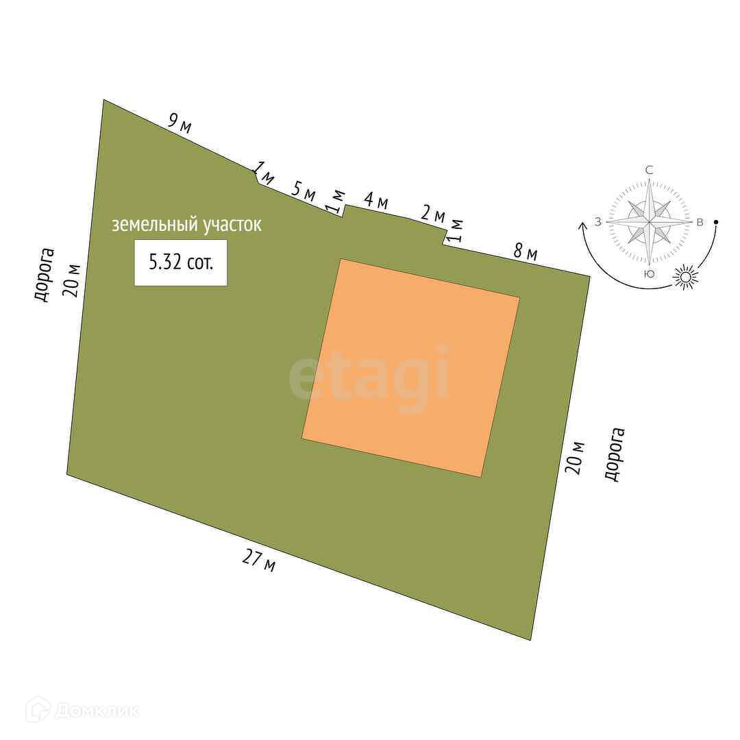 Участок общей площадью 5,3 сотки, разработан и ухожен. 2 сотки отведены под посадки, выделено место для отдыха, где установлен бассейн.