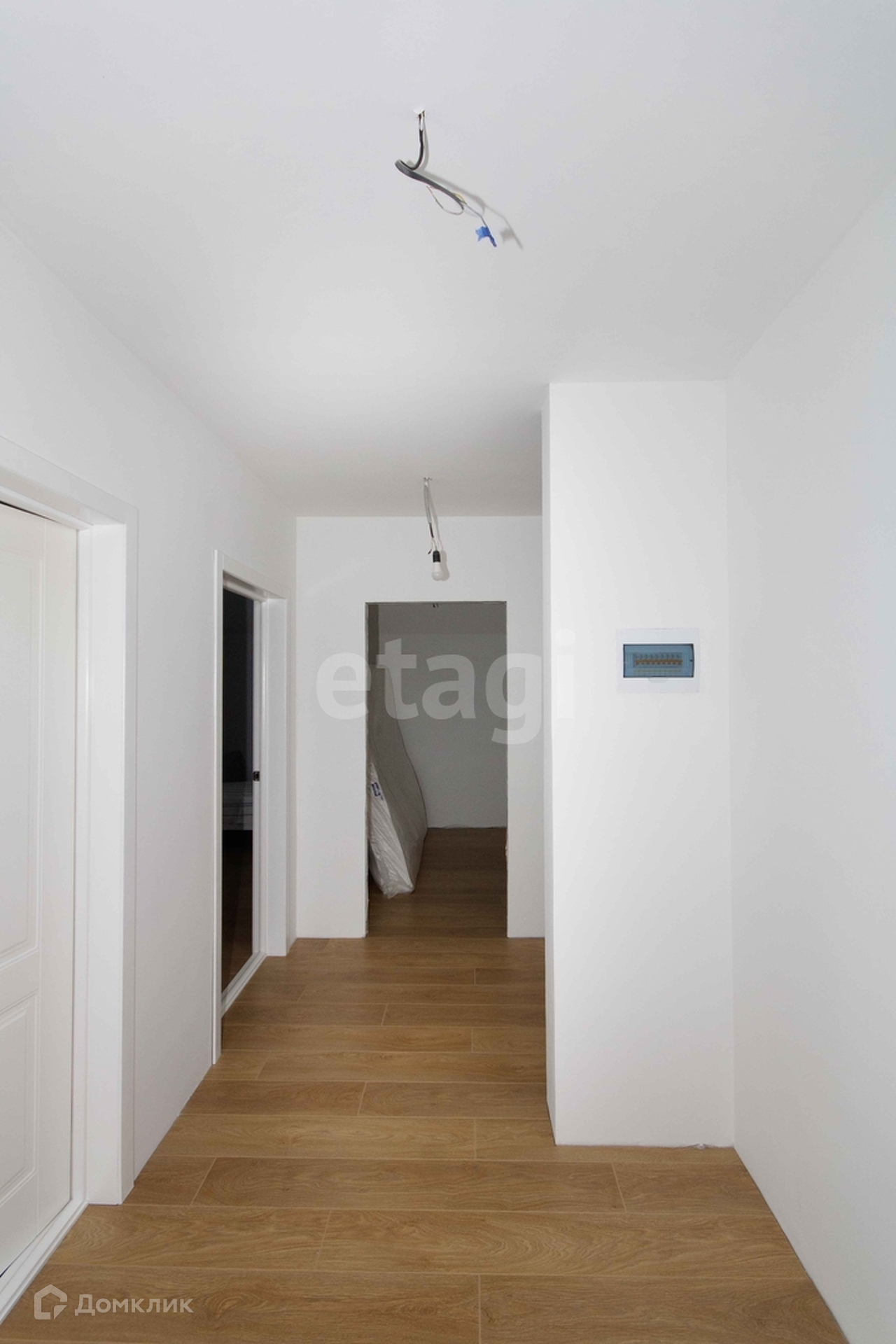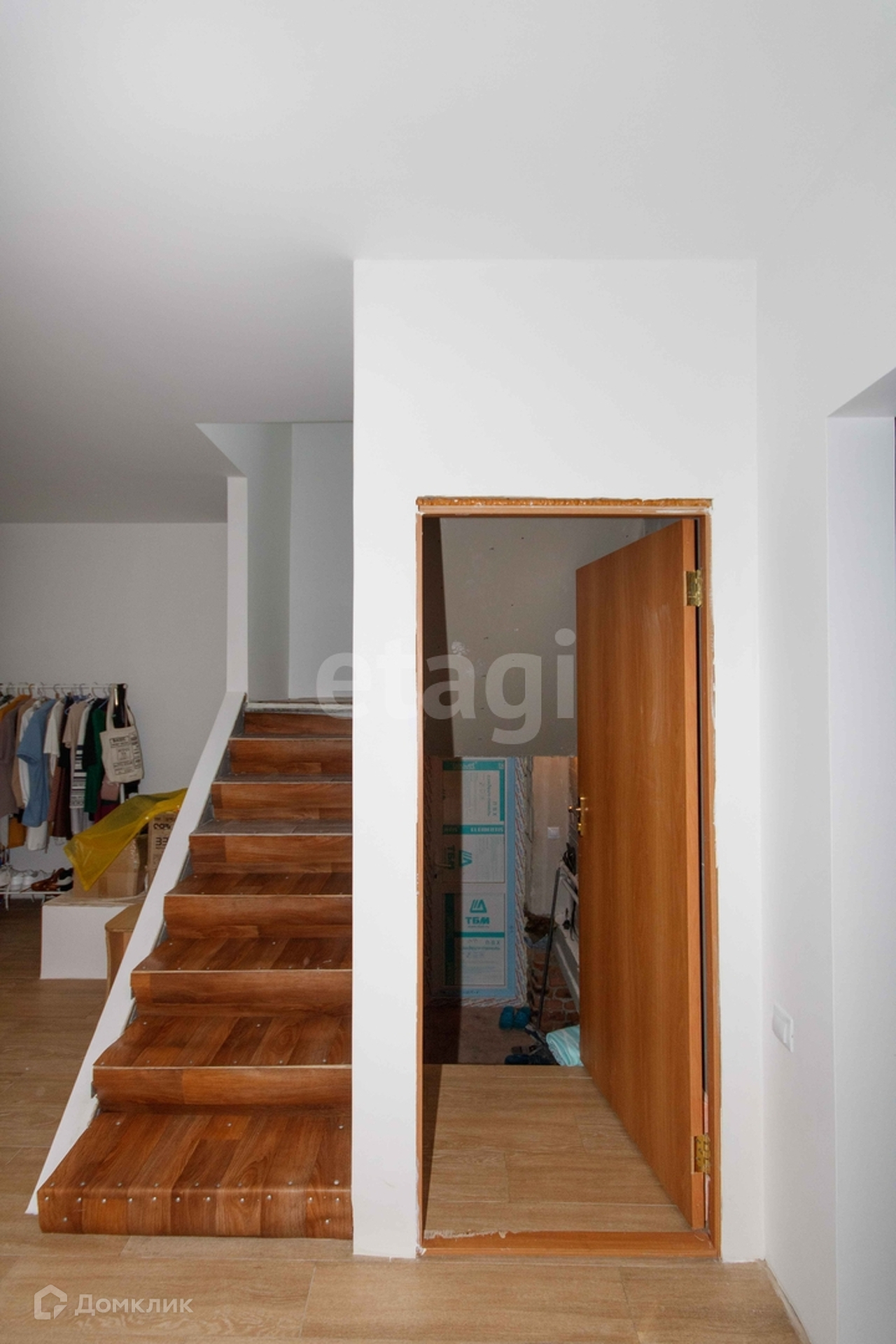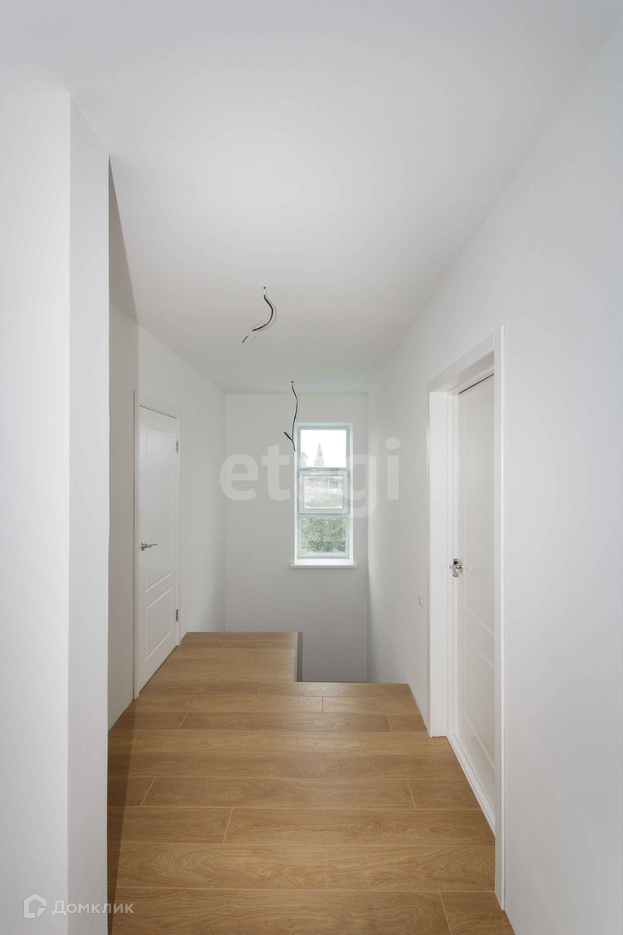 На первом этаже находится кухня, гостиная, совмещенная со столовой зоной (40 кв.м.). Общая площадь первого этажа 68,3 кв.м. На втором этаже 3 спальные комнаты, 2 гардеробные, санузел. Во всем доме сделан теплый пол (напольное покрытие на первом этаже - плитка + ламинат, на втором - ламинат).