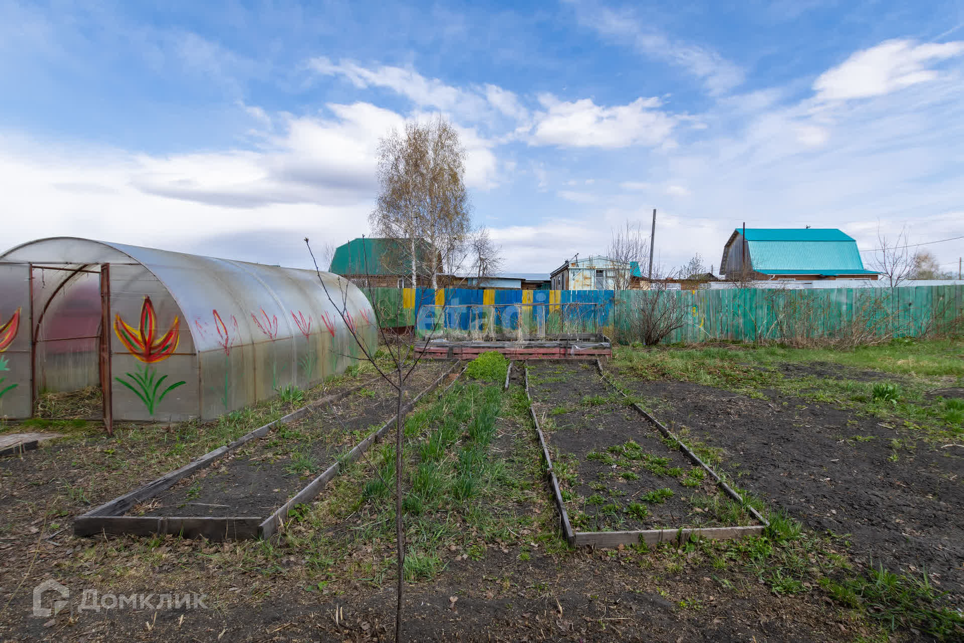На земельном участке 9.28 соток имеется домик S - 25,1 м2, колодец, теплица, огорожен забором из профнастила с калиткой и воротами для въезда автомобиля.