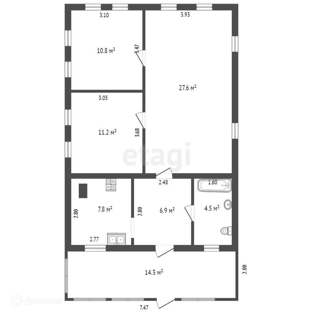 Общая площадь 68.8 м2