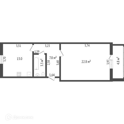 Общая площадь 36.6 м2