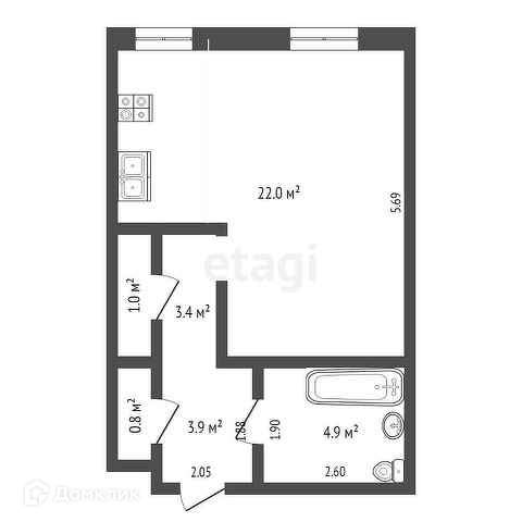 Общая площадь 38.2 м2