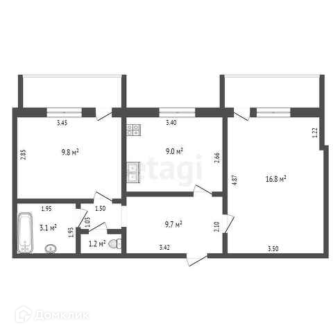 Общая площадь 49.2 м2