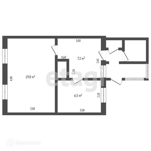 Общая площадь 32.7 м2
