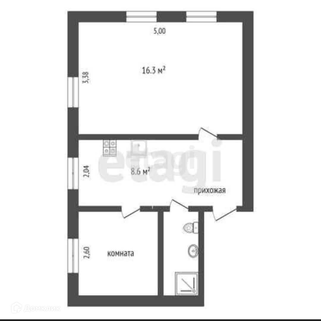 2-комнатная квартира, 33.6 м2, этаж 1 / 2, на продажу в Ишиме, Советская улица, 13