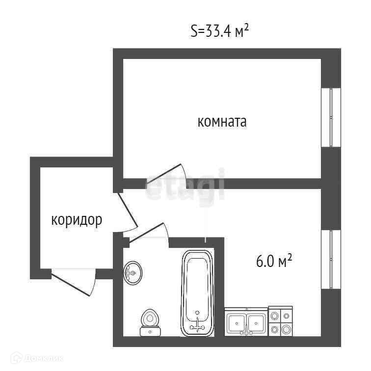 Общая площадь 33.4 м2