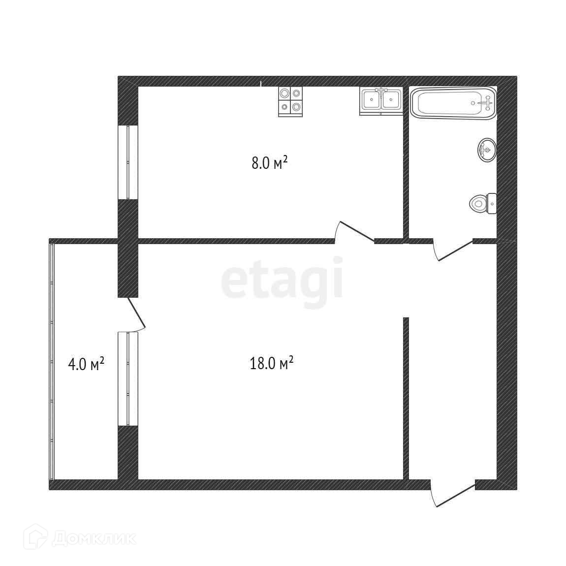 1-комнатная квартира, 28.7 м2, этаж 4 / 4, на продажу в Ишиме, Курганская улица, 83/А
