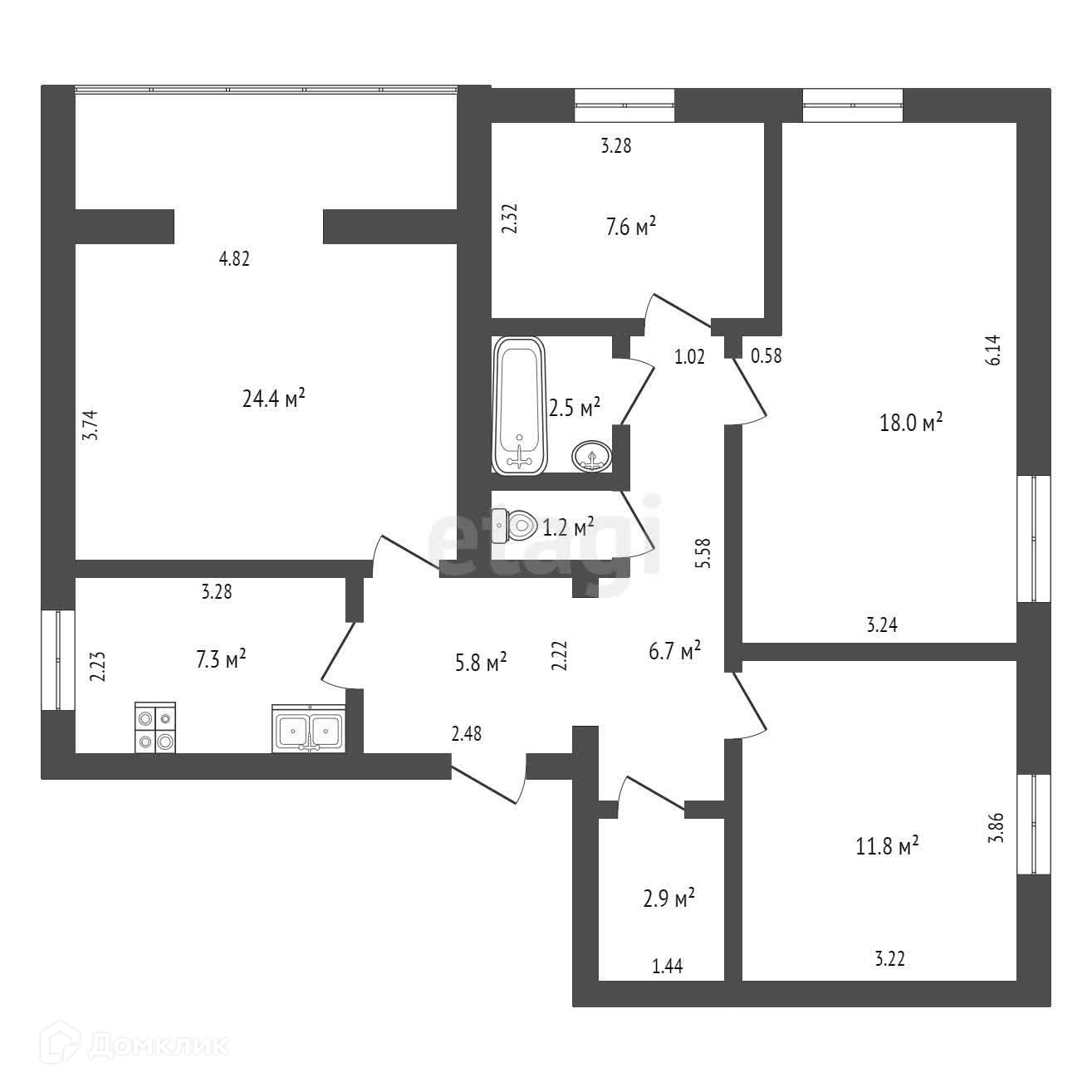 Общая площадь 88.2 м2