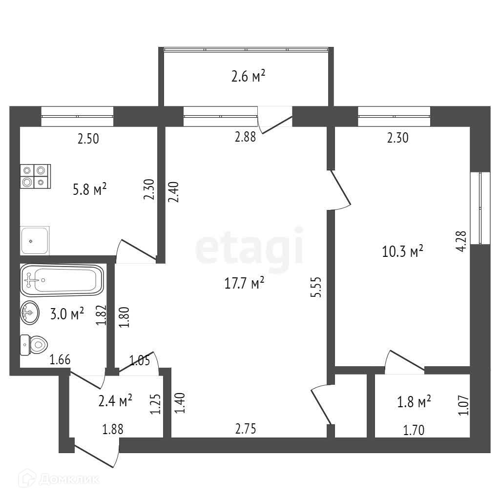 Площадь кухни 5.8 м2