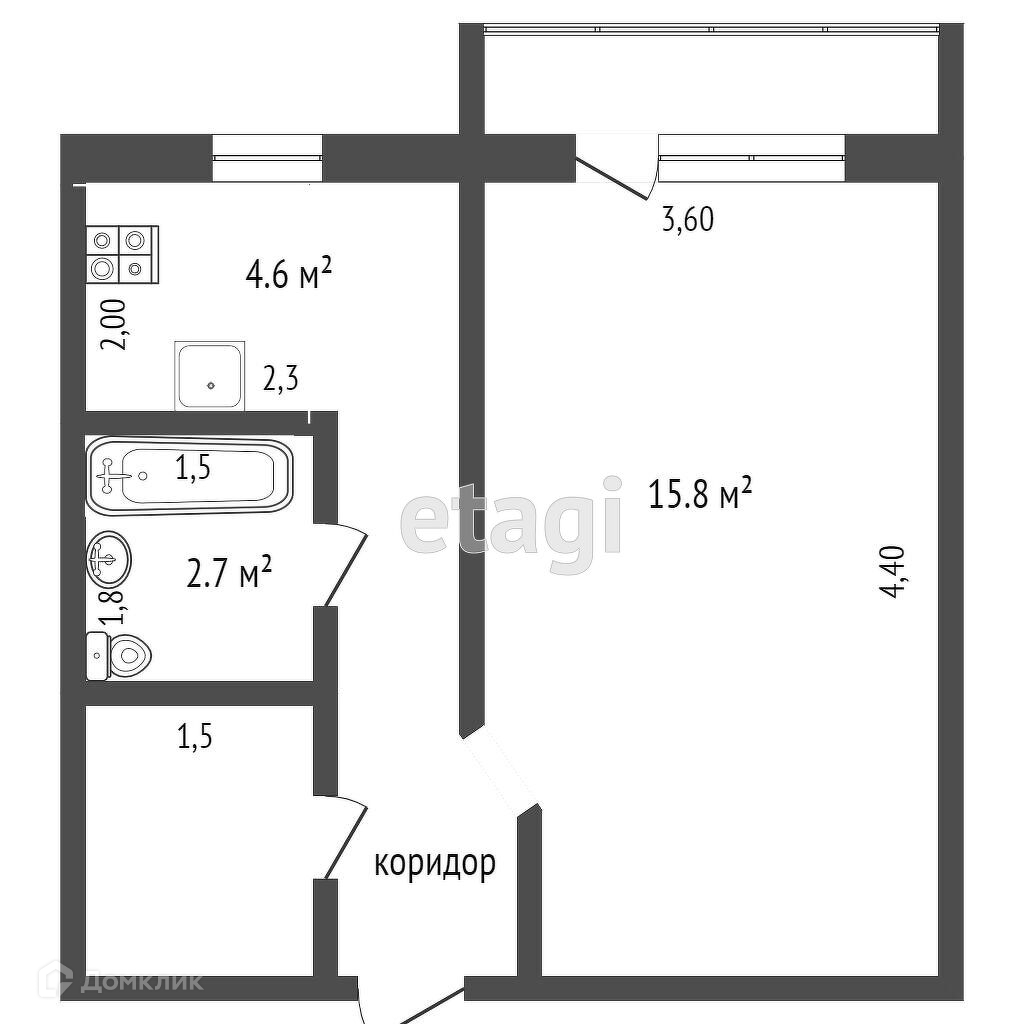 Общая площадь 24.6 м2