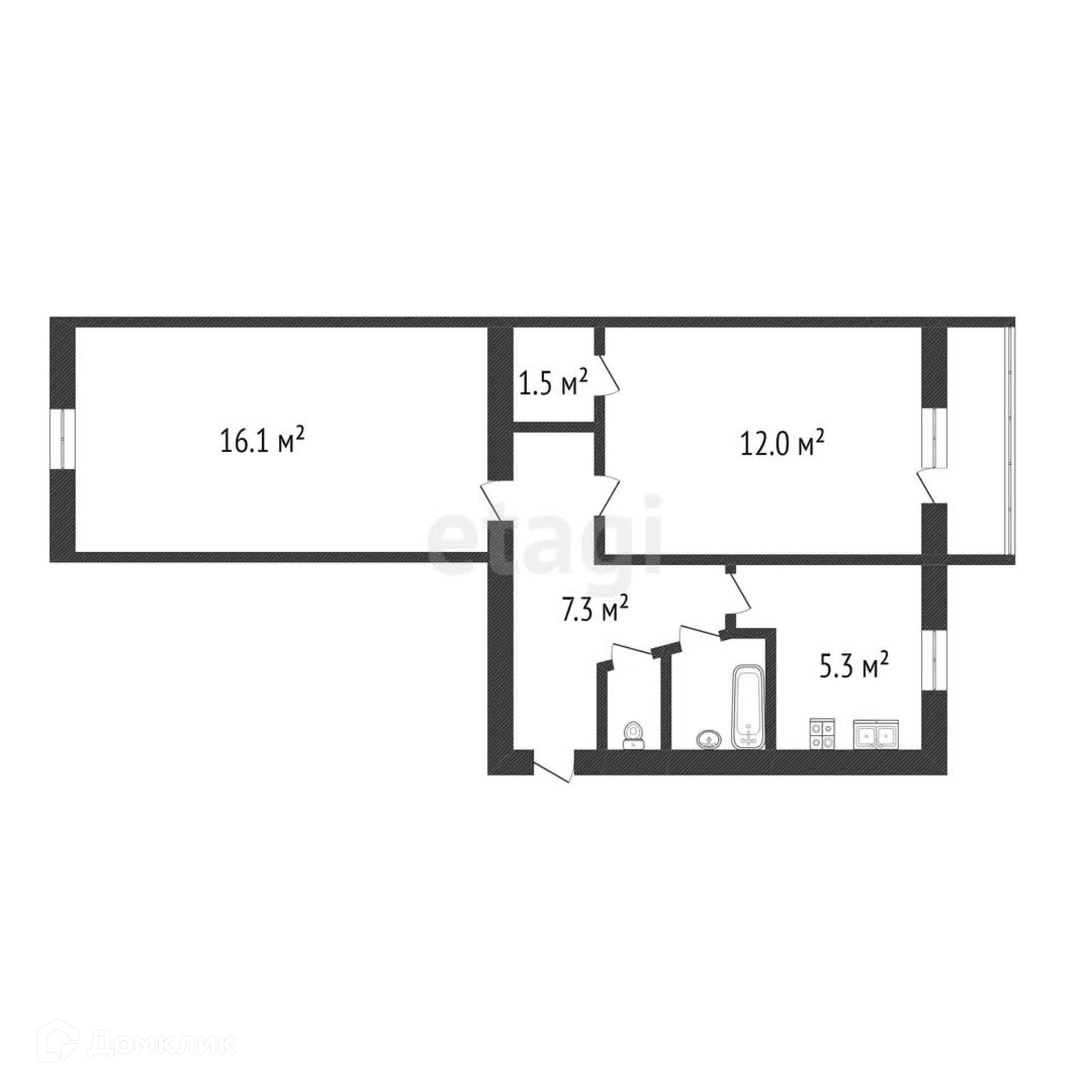 Общая площадь 45.3 м2