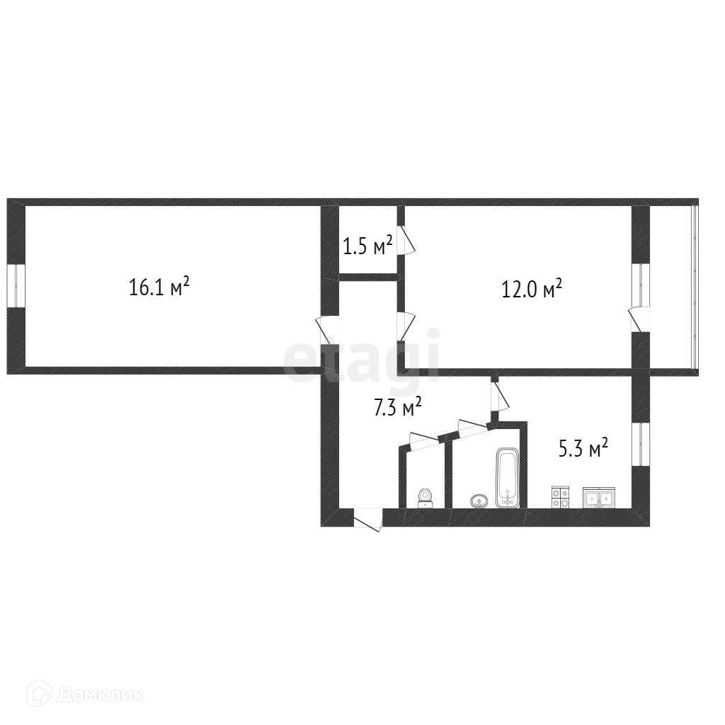 2-комнатная квартира, 45.3 м2, этаж 4 / 5, на продажу в Ишиме, Большая улица, 165