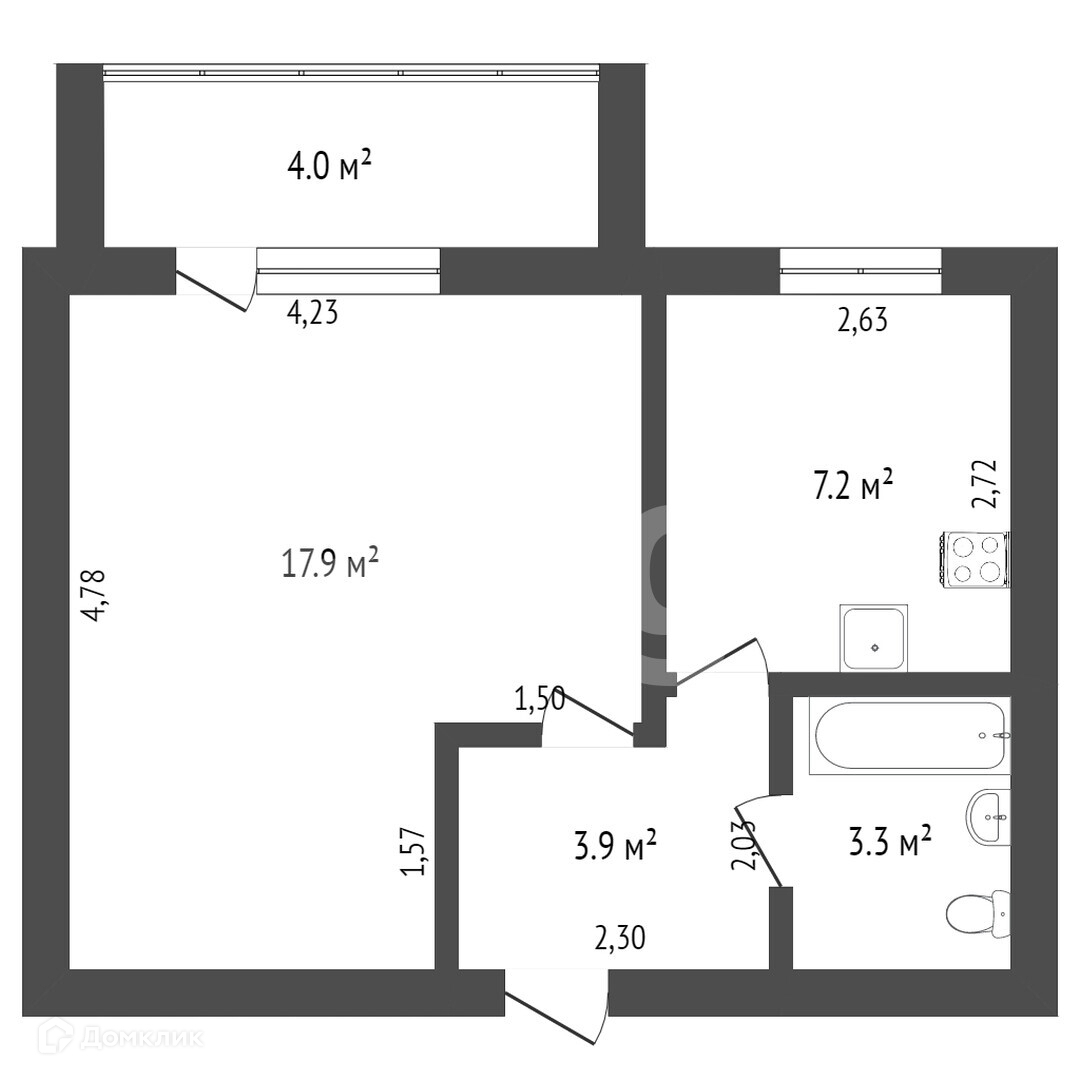 Балкон, лоджия 1 балкон