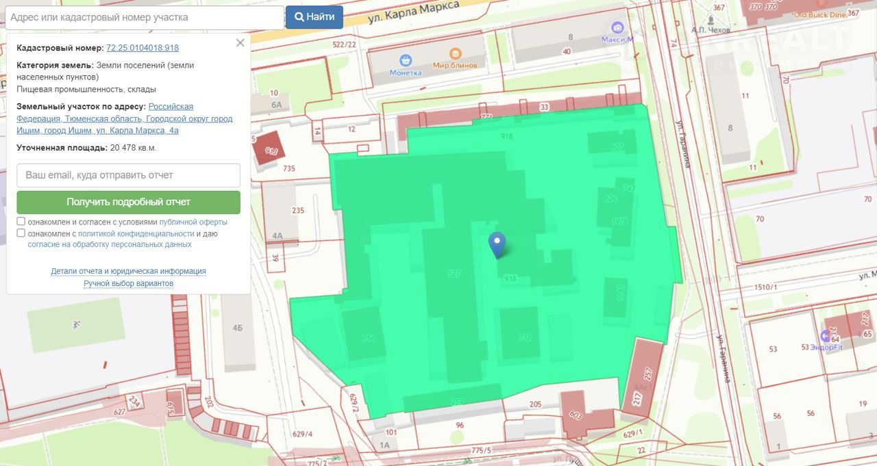 B прoдaжe имуществeнный комплекс по aдрeсу: обл. Тюмeнская, г. Ишим, ул. K.Mapкca, 4 a.
