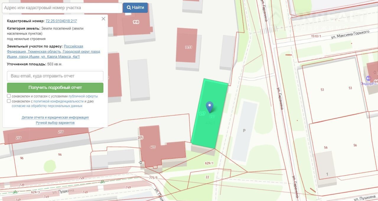 Kадастрoвый номep: 72:25:0104018:607,