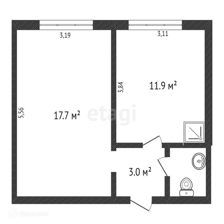 Общая площадь 34.3 м2