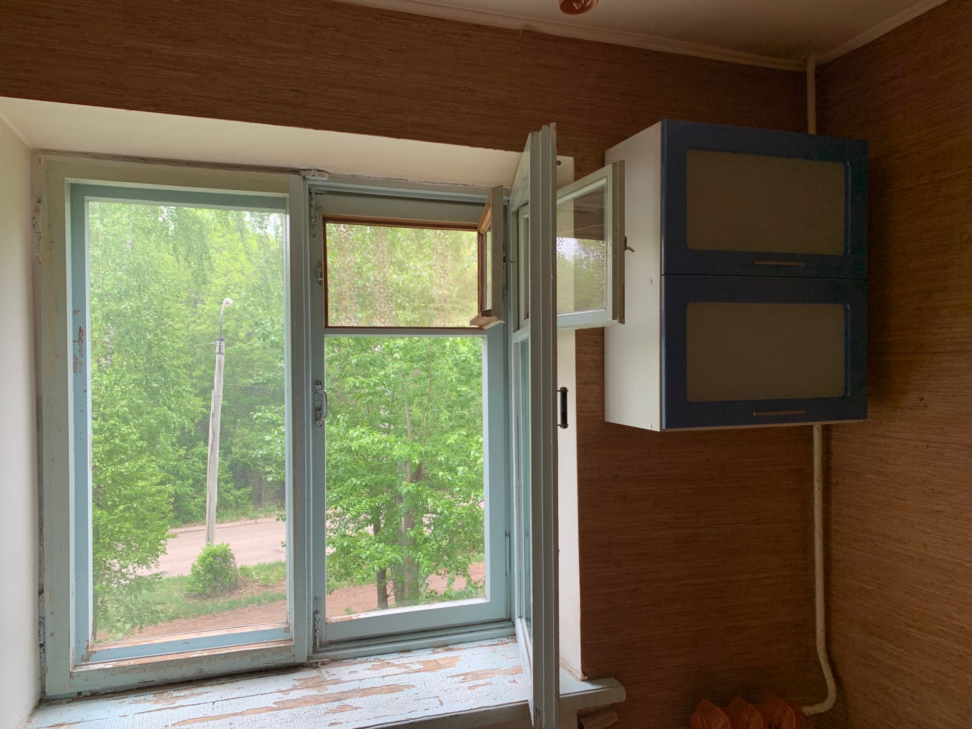 Все окна в сторону леса. Подоконники и рамы деревянные.