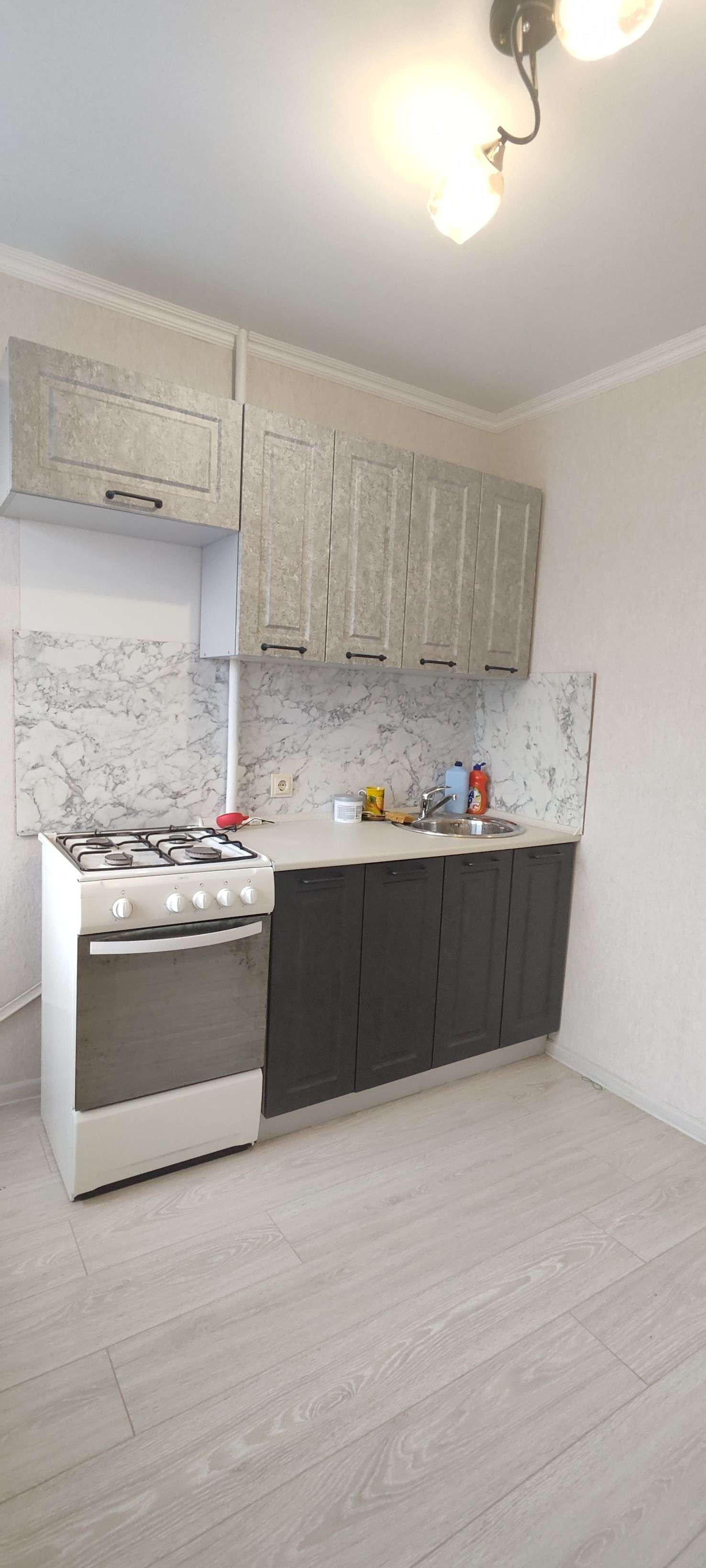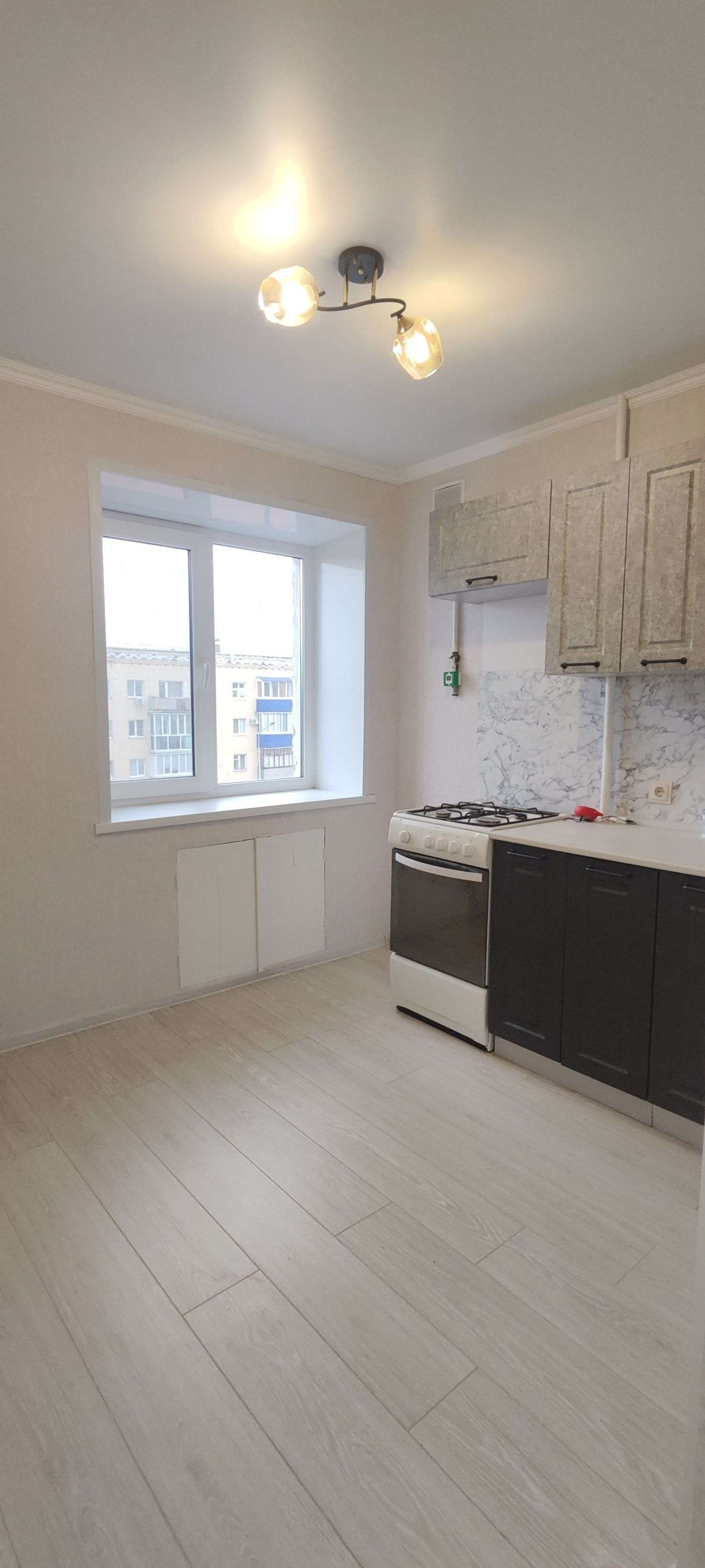 В квартире выполнен хороший ремонт. Всё чисто и аккуратно. Установлены новые пластиковые окна, межкомнатные двери. Пол выровнен и уложен ламинат. Новая проводка и качественная входная дверь. Остаётся кухонный гарнитур.