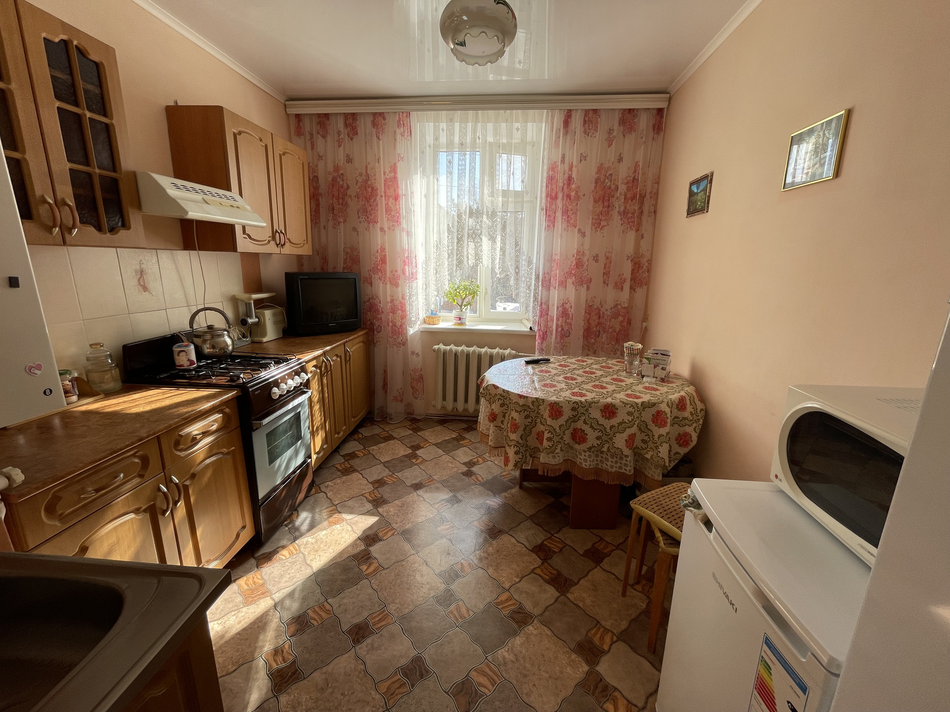 продается 3кв ул. Советская, д.97, 2 этаж, общая площадь53,6 кв.м, косметический ремонт:: во всех комнатах современные деревянные окна; на полу - линолеум, в жилых комнатах - ламинат, в сан/узле - кафель, панели. В подвале имеется вместительная ячейка. Квартира светлая, очень теплая, соседи дружелюбные, чистый подъезд..