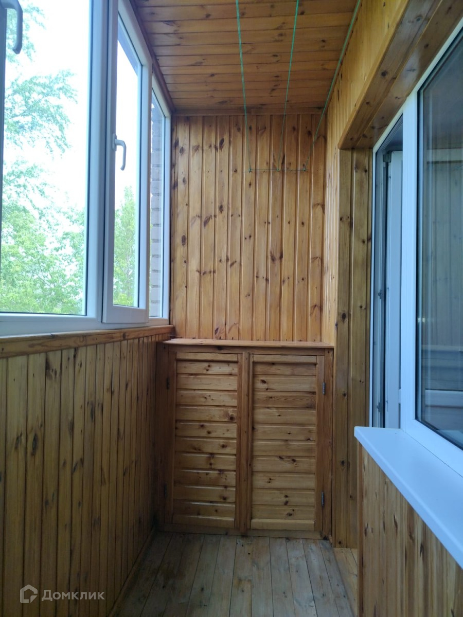 -Балкон полу-лоджия застеклен двойным стеклопакетом и отделан деревом.
