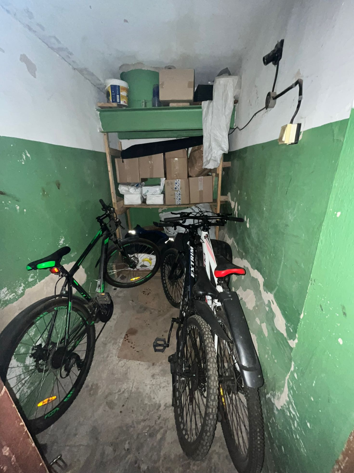 На первом этаже есть подсобное помещение на двоих хозяев  но места хватает ставить велосипеды или какие та вещи что бы не заносить в квартиру что очень удобно
