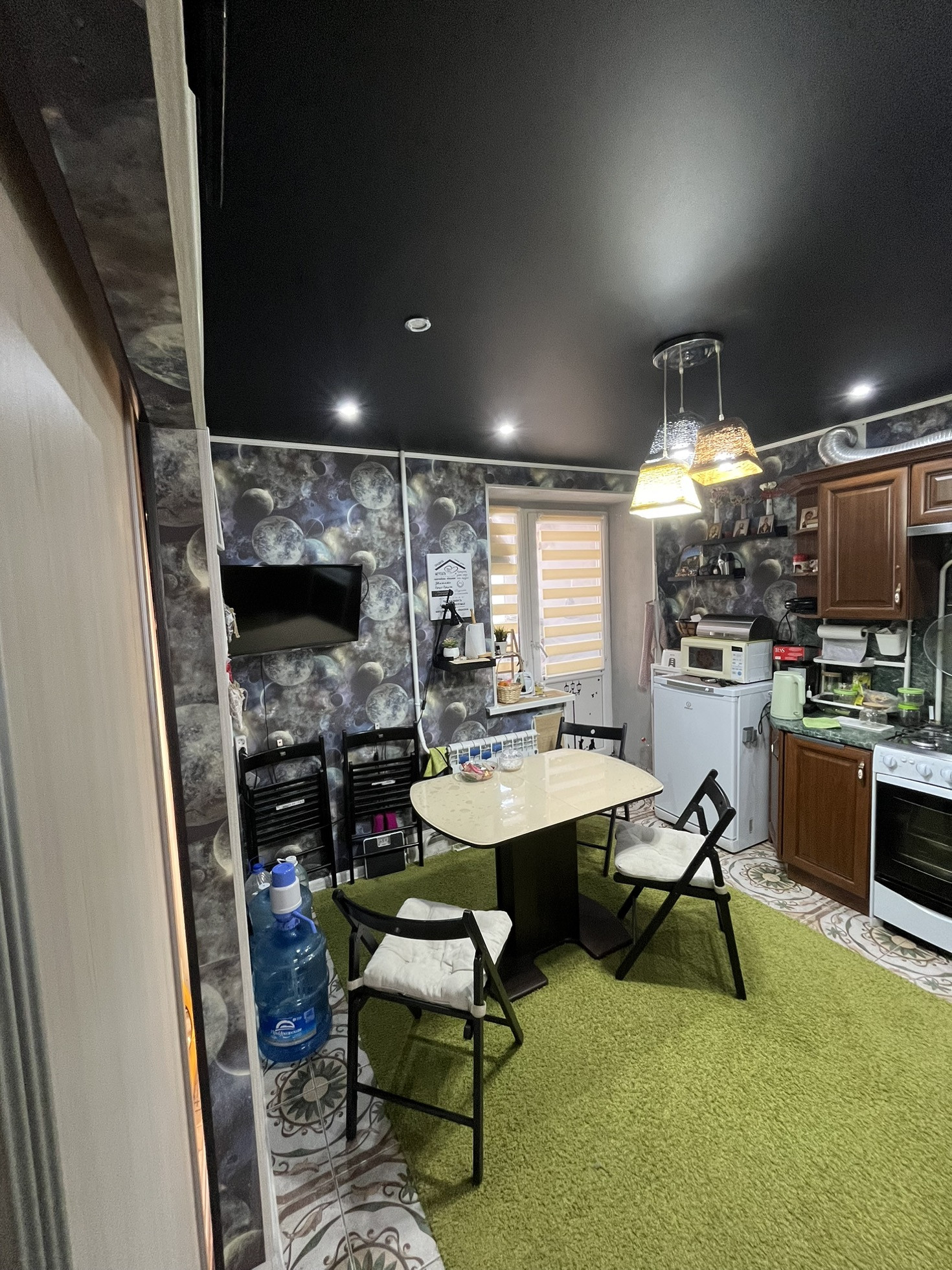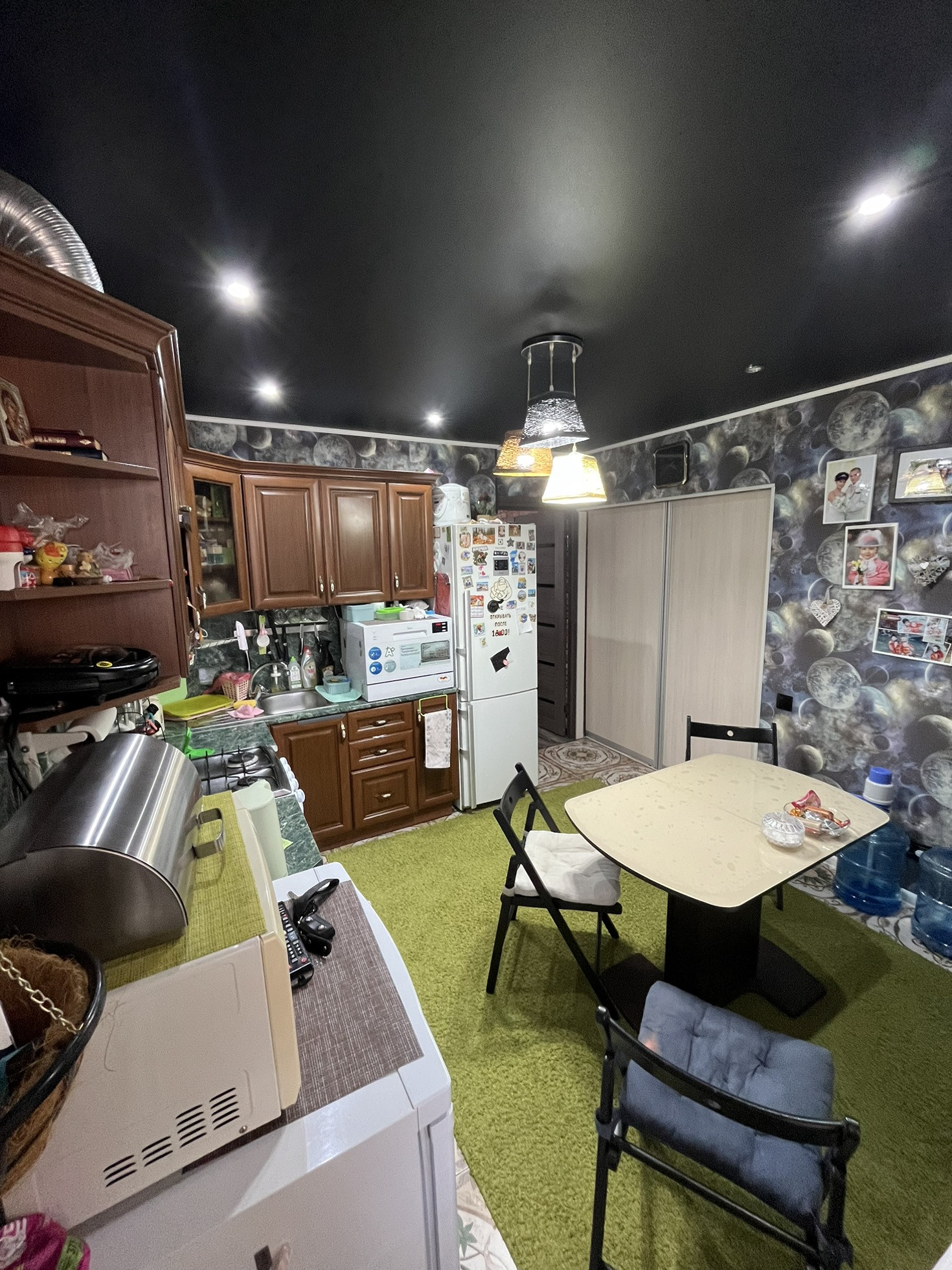 Перепланировка на кухне узаконена теперь она стала очень шикарная и огромная  что вмещает много гостей на праздники!!!