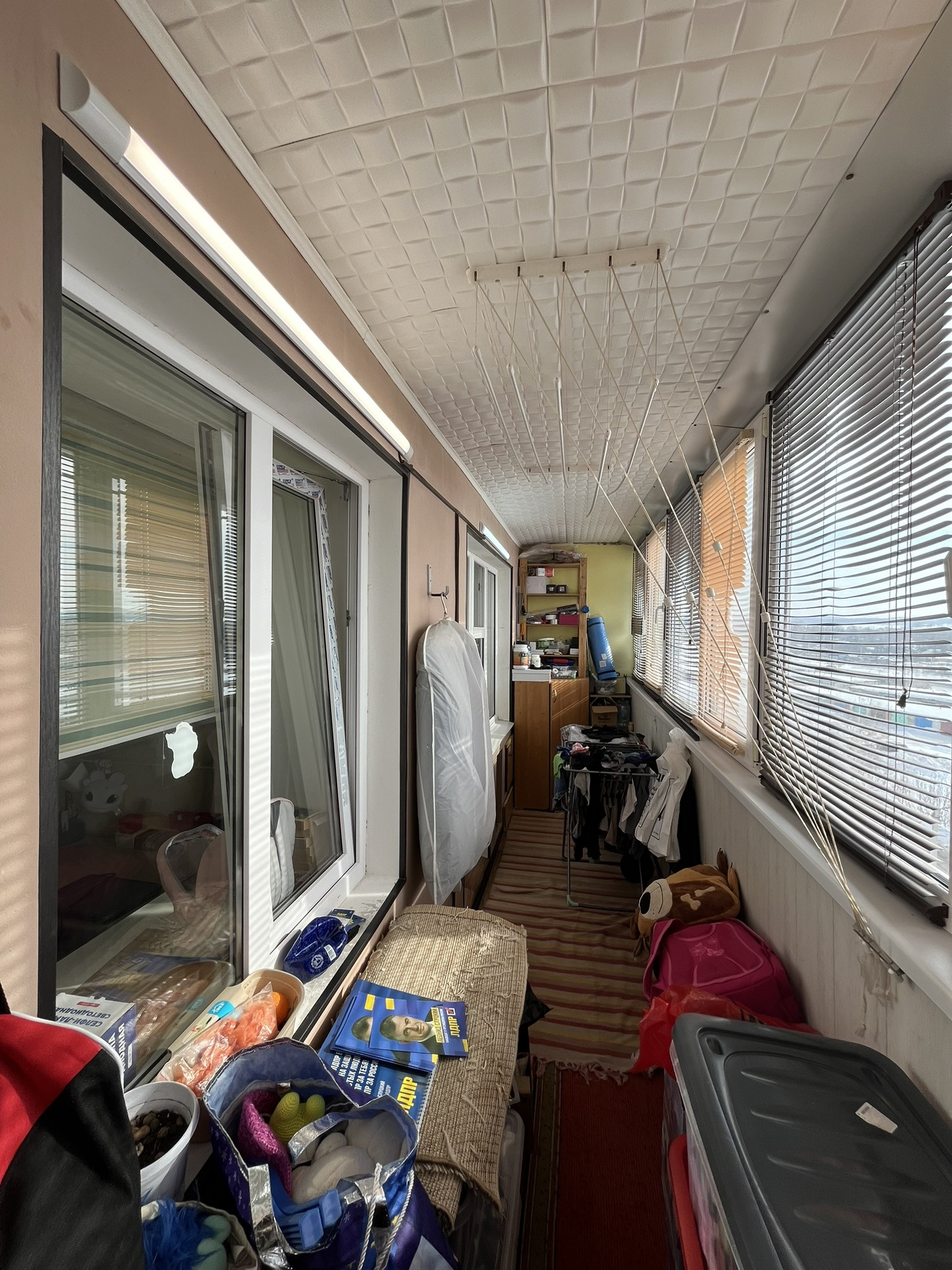 На лоджии балкон утеплен и сделан встроенный сейф в стену  удобно и не занимает место нужная вещь а также проведен свет и розетка для нужды