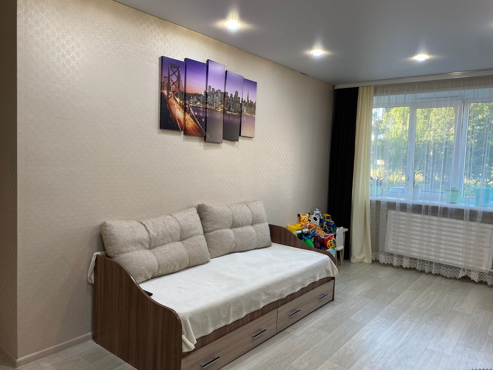 Сделан ремонт: наливные полы, стены выравнены и оштукатурены, пластиковые окна, натяжные потолки, туалет с ванной совмещены сделаны кафелем. Качественные входная дверь , а также межкомнатные двери.