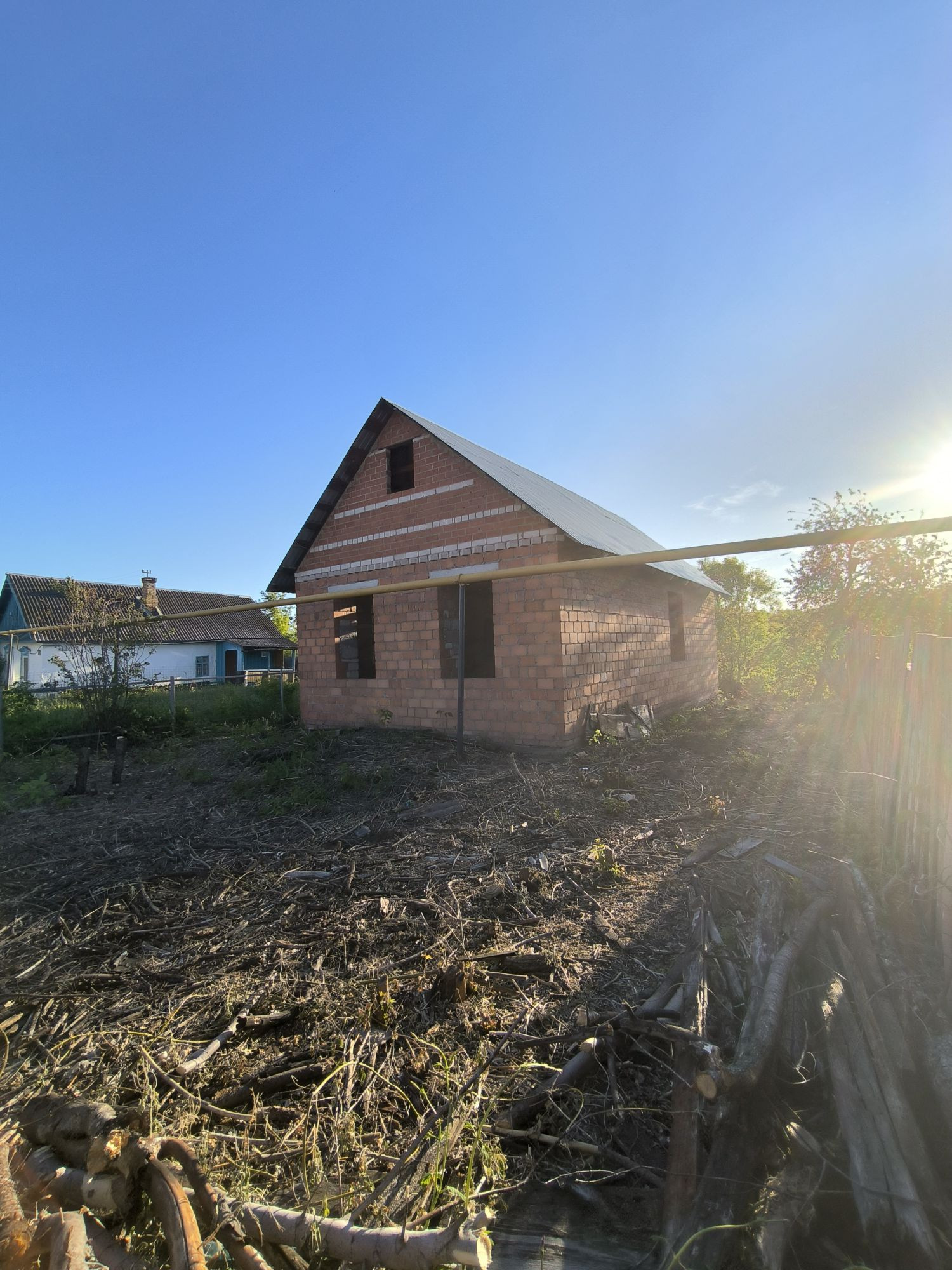 Продам земельный участок с домом . дом в процессе строительства. Поднята коробка , установлена крыша. Хорошая качественная постройка.