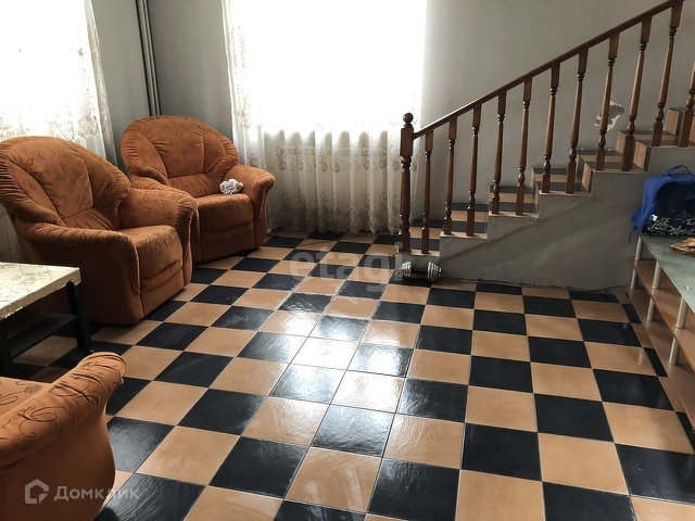Коттедж 2 этажа +1 полноценный полуцоколь. Площадь этажа 100 м2, высота 1 и 2 этажей 3,1 м, цоколя 2,5. Стены толстые 70 см с утеплителем 10 см, перекрытия панели пустотелые. Весь пол первого этажа перекрыт дорогой керамической плиткой, второй этаж: водостойкой ДСП. На первом этаже есть зал, хол, кухня, рабочая комната, туалет и прихожая. На втором этаже: 3 спальни, гардеробная комната 10 м2, которая может послужить как четвёртая спальня, раздельный туалет и ванная комната. Цоколь разделён на три комнаты: котельный, одна маленькая комната 15 м2 и третья все остальное. В доме проведено: центральное отопление + котел на твёрдом и газообразном топливе на 400 м2, центральная горячая и холодная вода, центральная канализация, 3-х фазное электричество. К дому пристроен гараж 50 м2 и высотой потолка 4 м. К дому подведён газ. На прилегающую территорию перед домом можно заехать на автомашине с двух ворот. Одни ворота въезжают под навес в 75 м2, все площадка забетонирована, так же есть небольшой садовый уголок 100 м2, все территория огорожена кирпичной стеной высотой 2 метра.