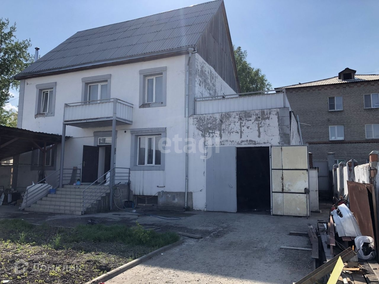Коттедж 2 этажа +1 полноценный полуцоколь. Площадь этажа 100 м2, высота 1 и 2 этажей 3,1 м, цоколя 2,5. Стены толстые 70 см с утеплителем 10 см, перекрытия панели пустотелые. Весь пол первого этажа перекрыт дорогой керамической плиткой, второй этаж: водостойкой ДСП. На первом этаже есть зал, хол, кухня, рабочая комната, туалет и прихожая. На втором этаже: 3 спальни, гардеробная комната 10 м2, которая может послужить как четвёртая спальня, раздельный туалет и ванная комната. Цоколь разделён на три комнаты: котельный, одна маленькая комната 15 м2 и третья все остальное. В доме проведено: центральное отопление + котел на твёрдом и газообразном топливе на 400 м2, центральная горячая и холодная вода, центральная канализация, 3-х фазное электричество. К дому пристроен гараж 50 м2 и высотой потолка 4 м. К дому подведён газ. На прилегающую территорию перед домом можно заехать на автомашине с двух ворот. Одни ворота въезжают под навес в 75 м2, все площадка забетонирована, так же есть небольшой садовый уголок 100 м2, все территория огорожена кирпичной стеной высотой 2 метра.