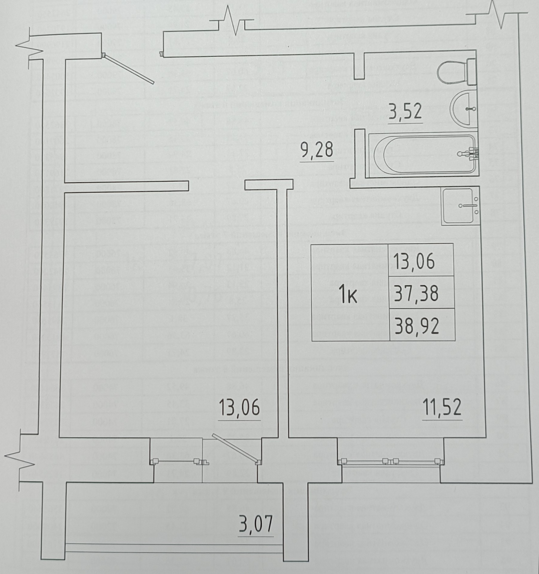 Общая площадь 37.4 м2