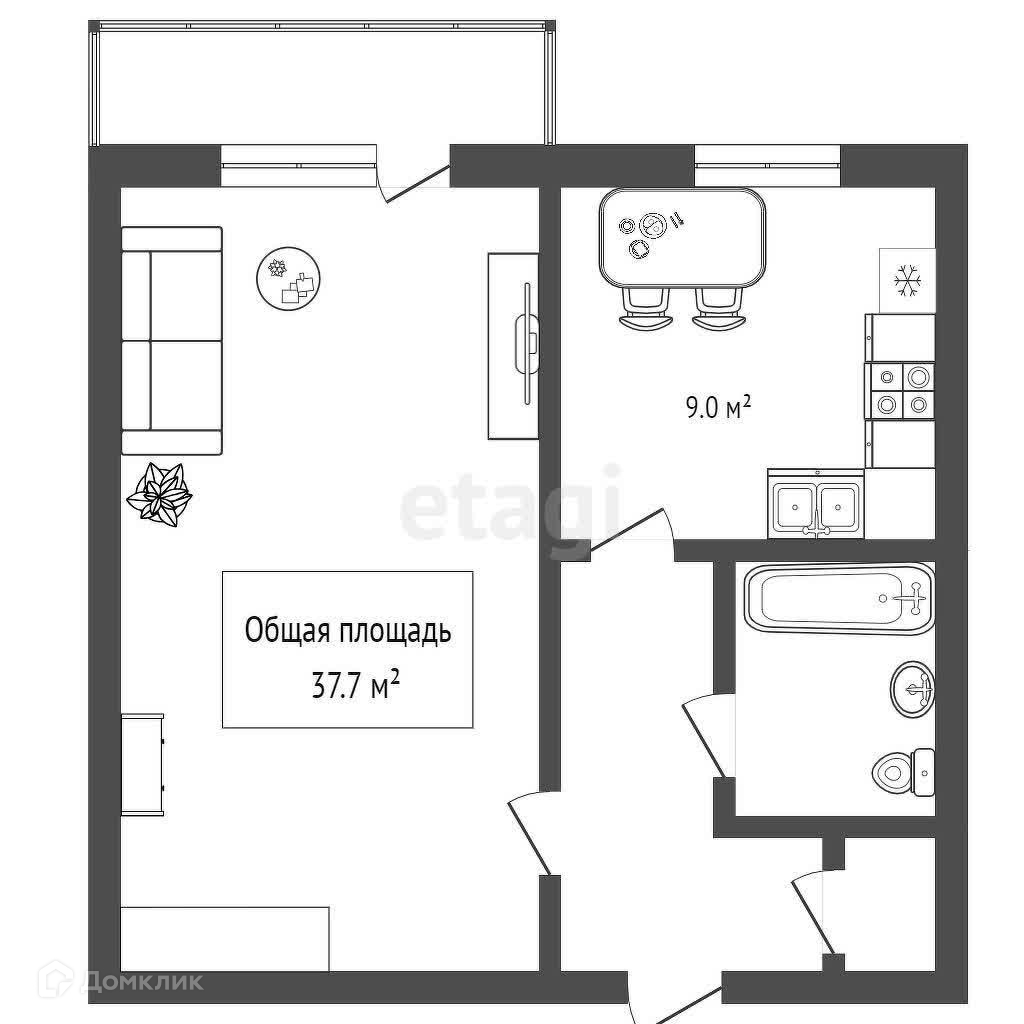 Общая площадь 37.7 м2