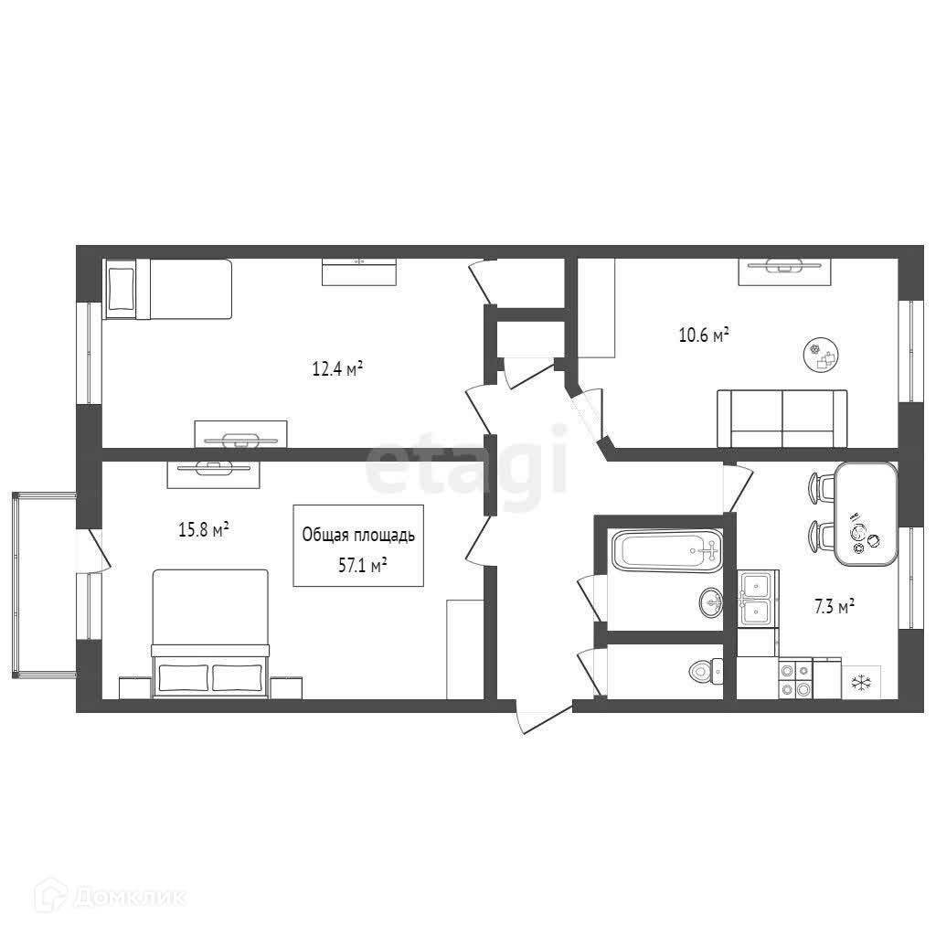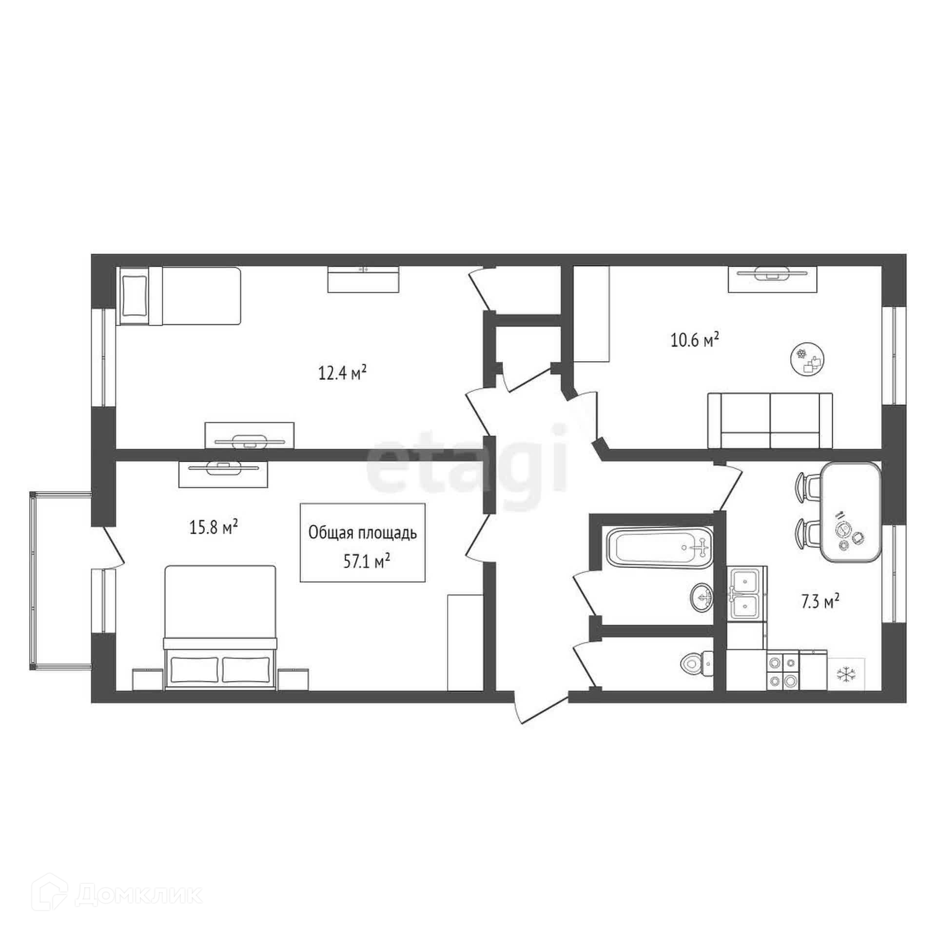 Общая площадь 57.1 м2