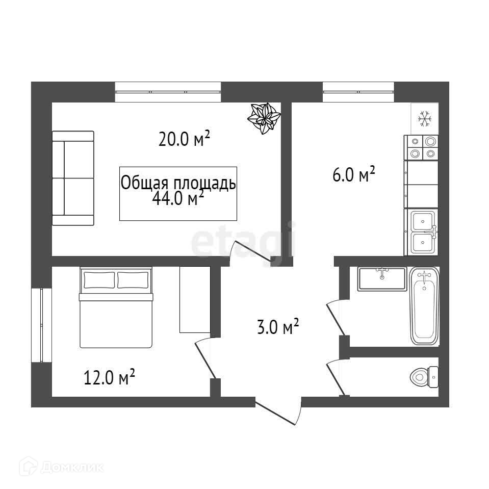 Общая площадь 44 м2