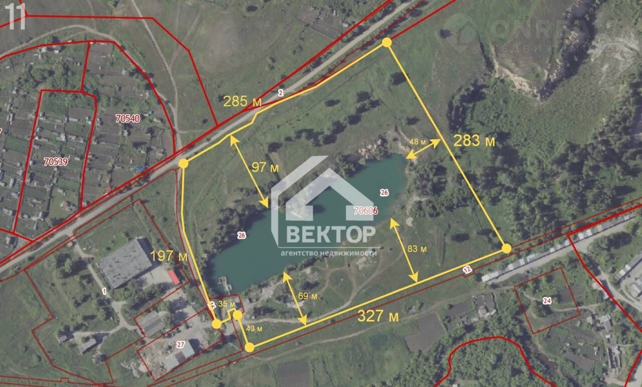 - на земельном участке, в углублении бывшего карьера, расположено изумрудное озеро. Озеро питает чистая ключевая вода, берега не заболочены. На данный момент используется для отдыха и рыбалки, в том числе и зимней. В озере обитают 3 вида рыбы (форель, карп, карась),