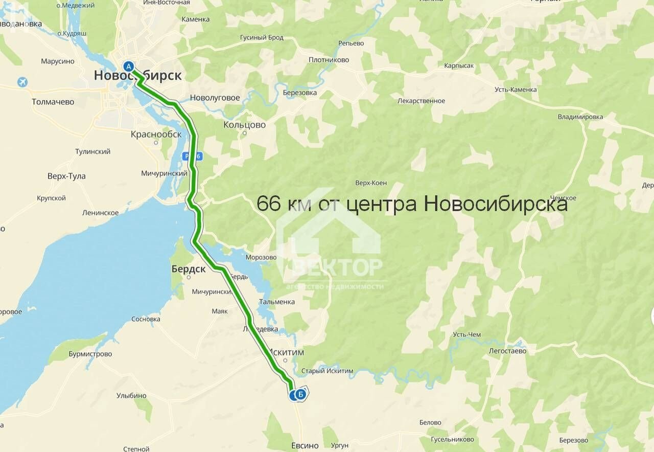 - расстояние от центра Новосибирска: 66 км,