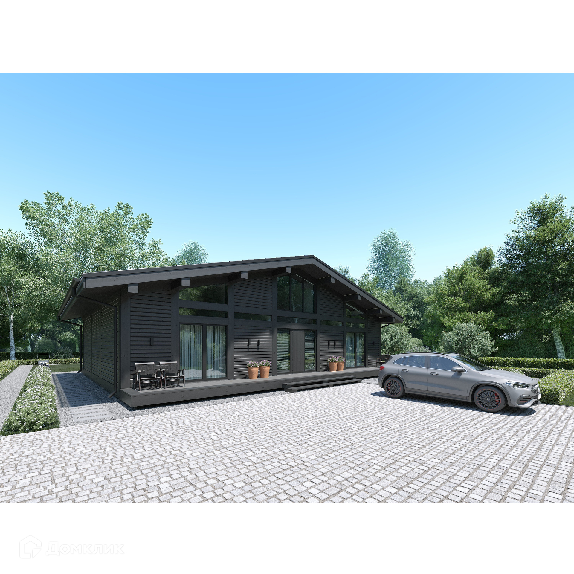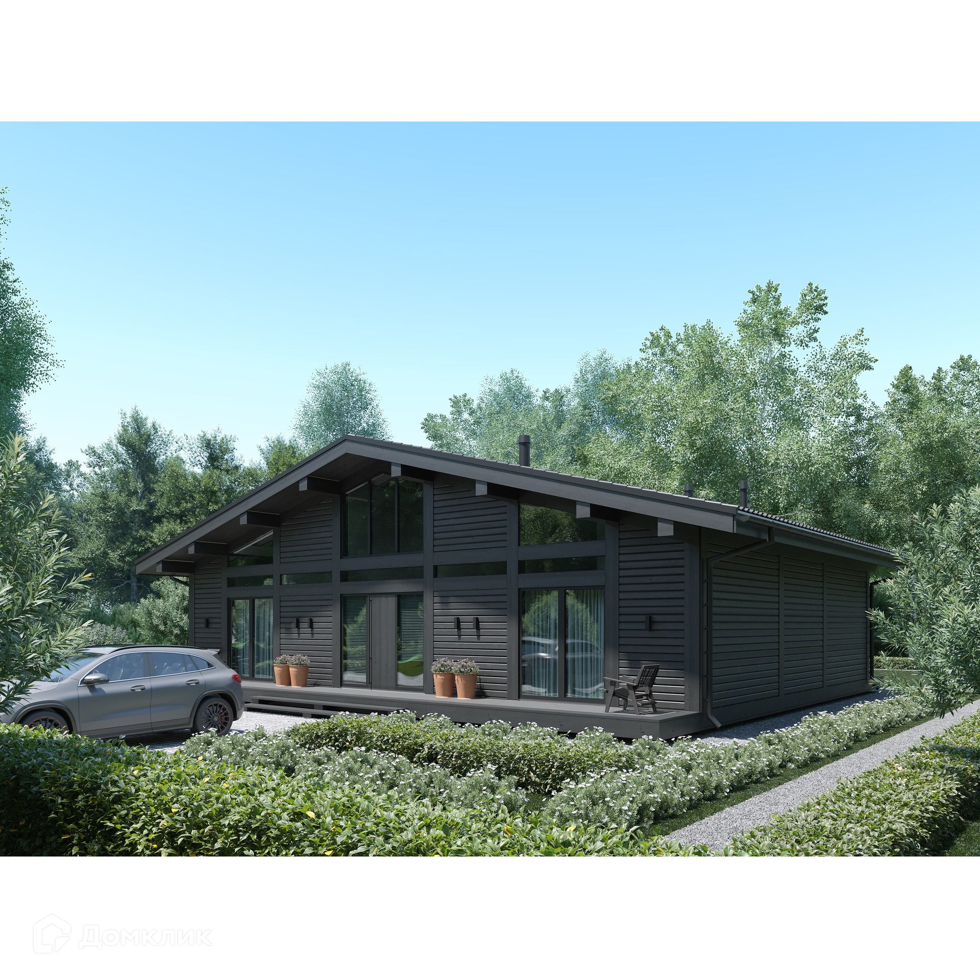 Особенности проекта: продуманная планировка, высокие потолки, большое количество витражных стен в доме, стильный фасад и высокая энергоэффективность.