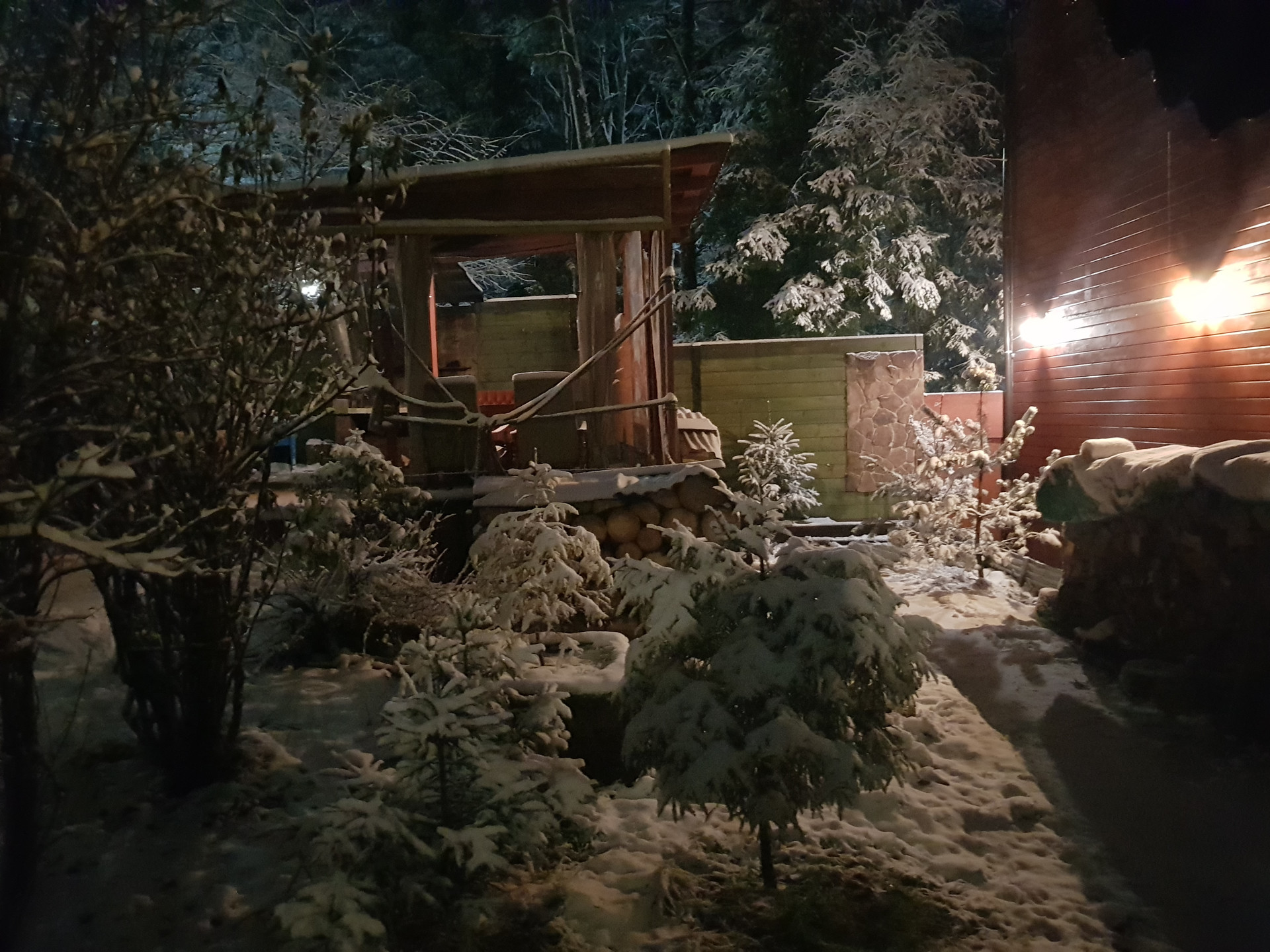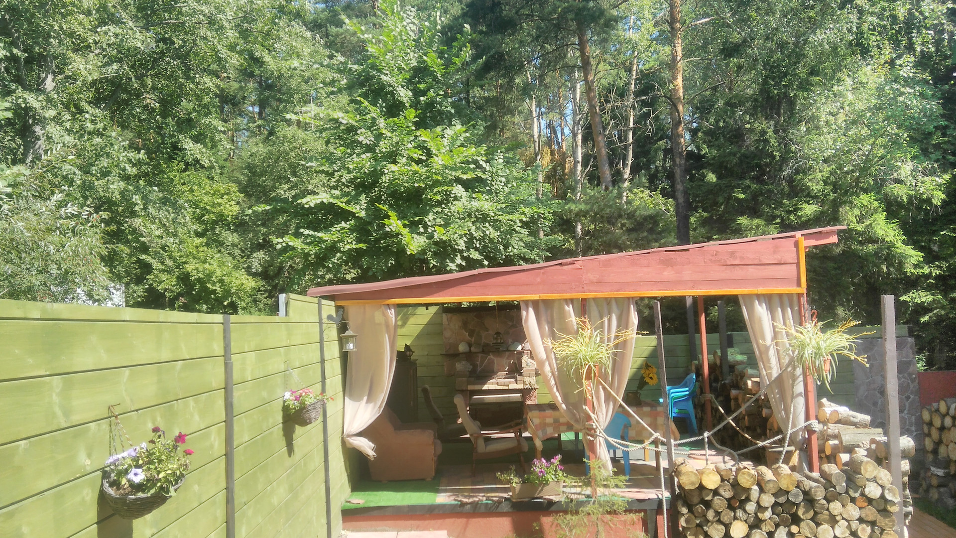 Двор уютный, с крытой мангал террасой.