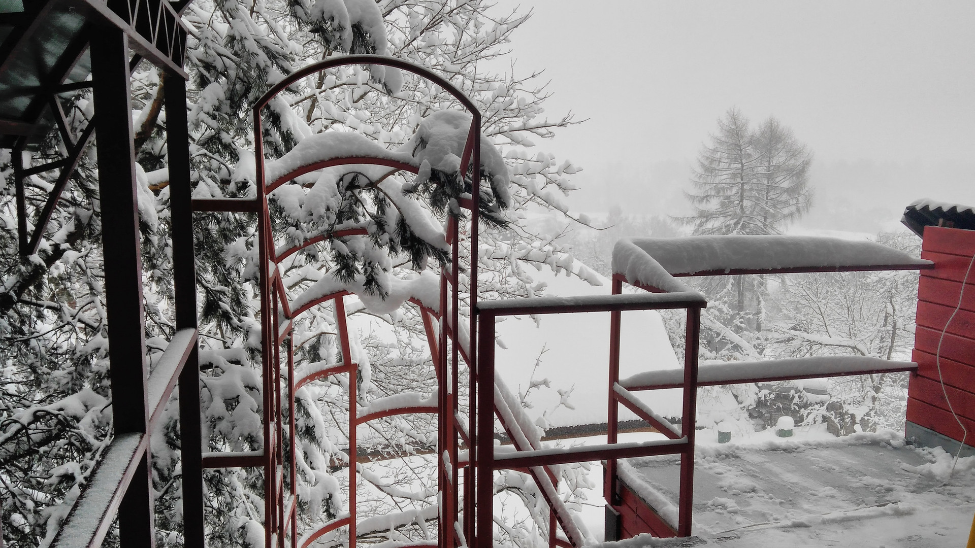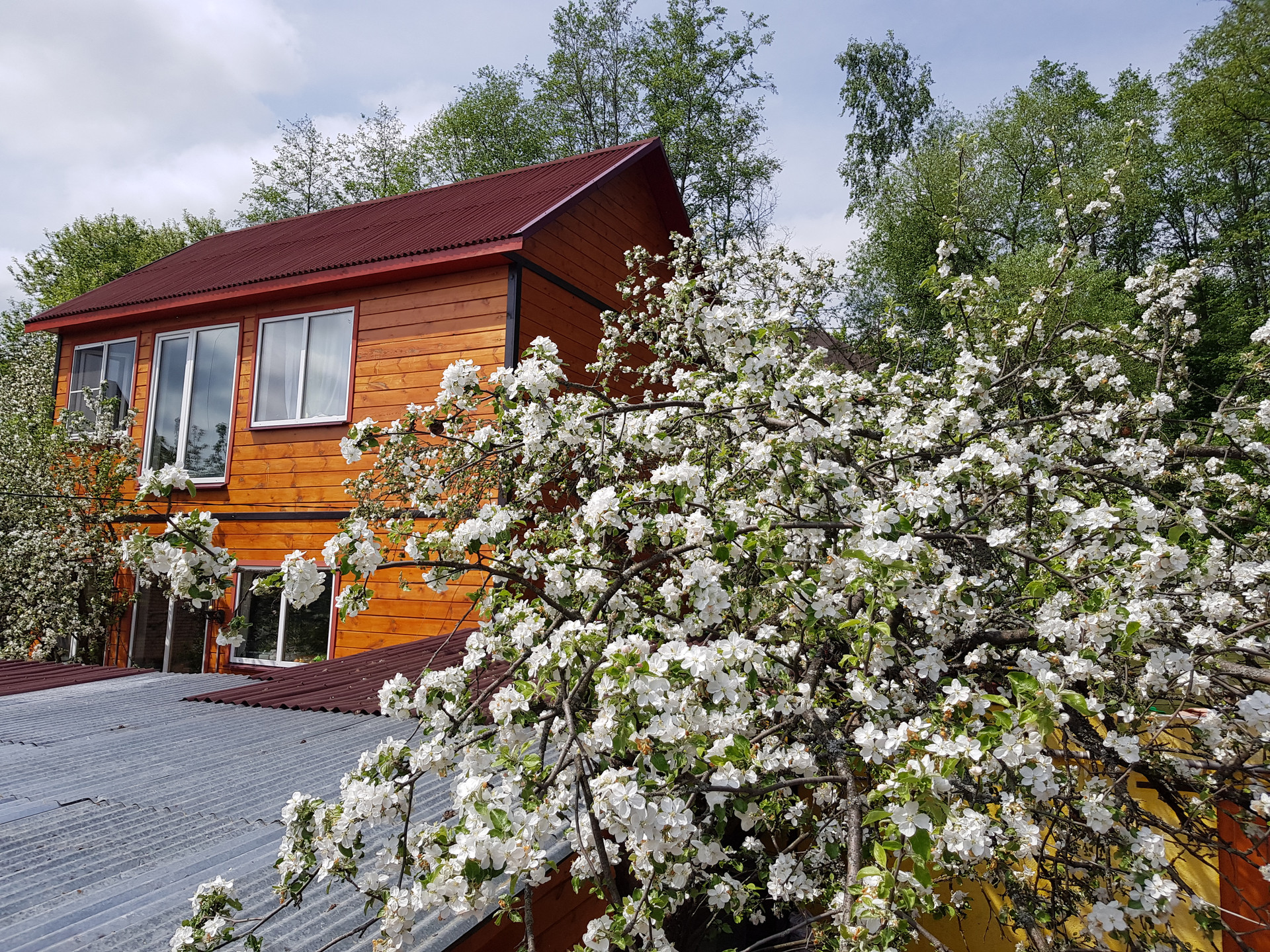 Основной двухэтажный дом 99 кв.м. с третьим этажом открытой верандой 20 кв.м. на плоской крыше. В окна смотрят ели, сосны, над двором нависают клены. На обоих этажах санузлы. Гостиная с кухней и отдельная спальня на первом этаже. На втором - спальня с панорамными окнами на лес, а также проходная комната. Имеется застекленный балкон с видом на монастырь. На веранде третьего этажа перед Вами откроются захватывающие виды на долину Истры, монастырь и его парк.