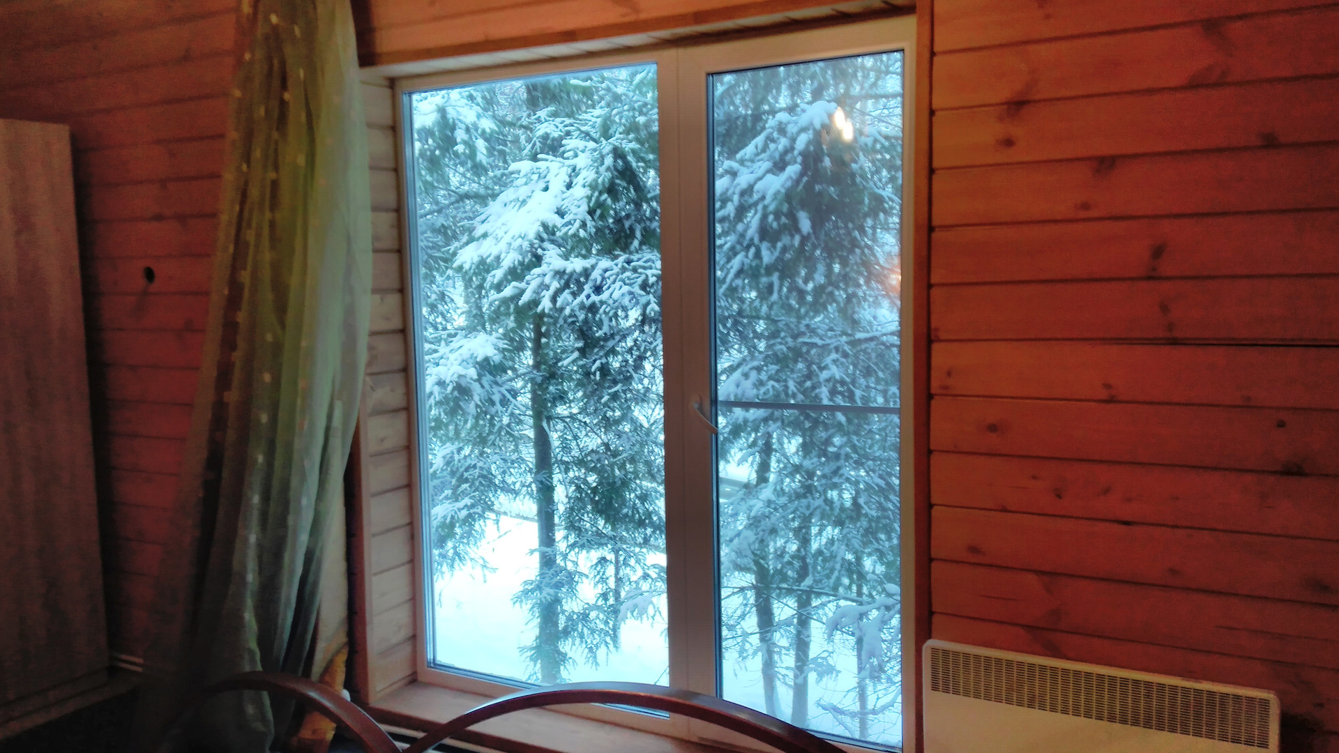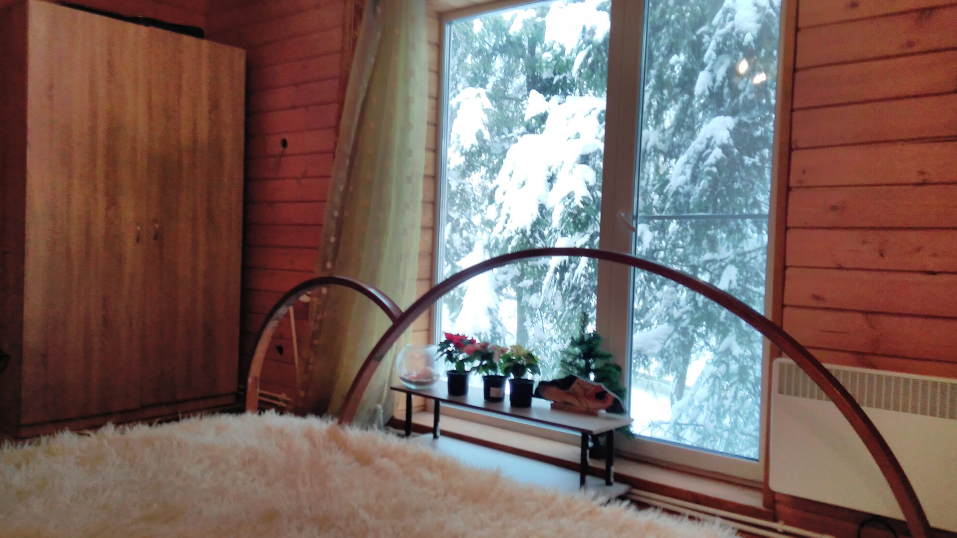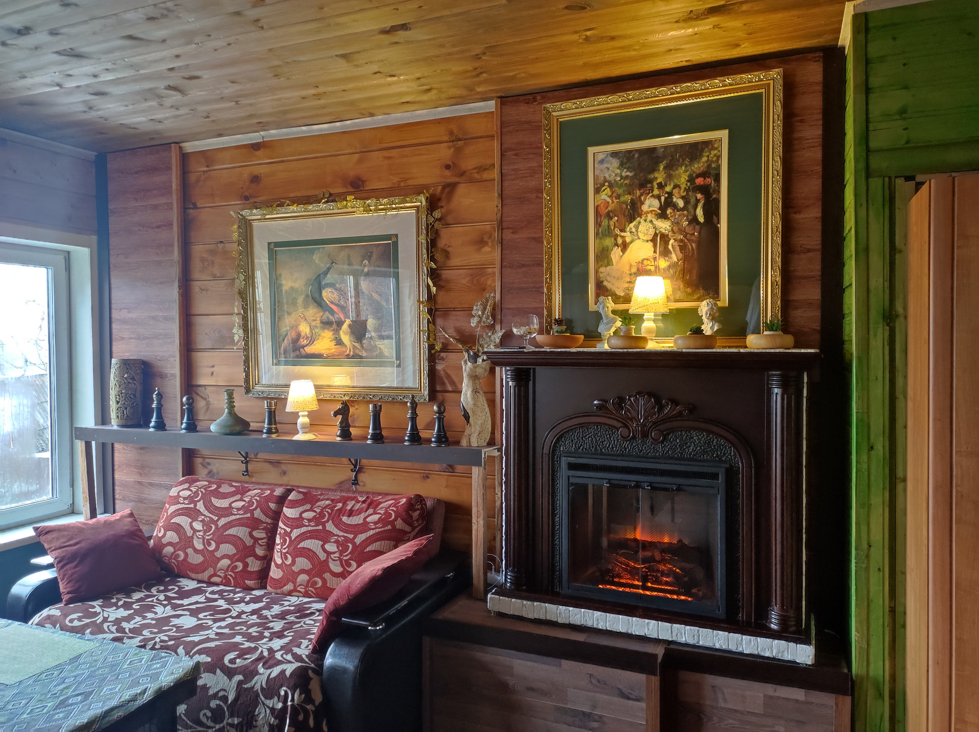 Первый этаж в гостевом доме — это гостиная с кухонной зоной. Три окна с прекрасными видами. И малая спальня.