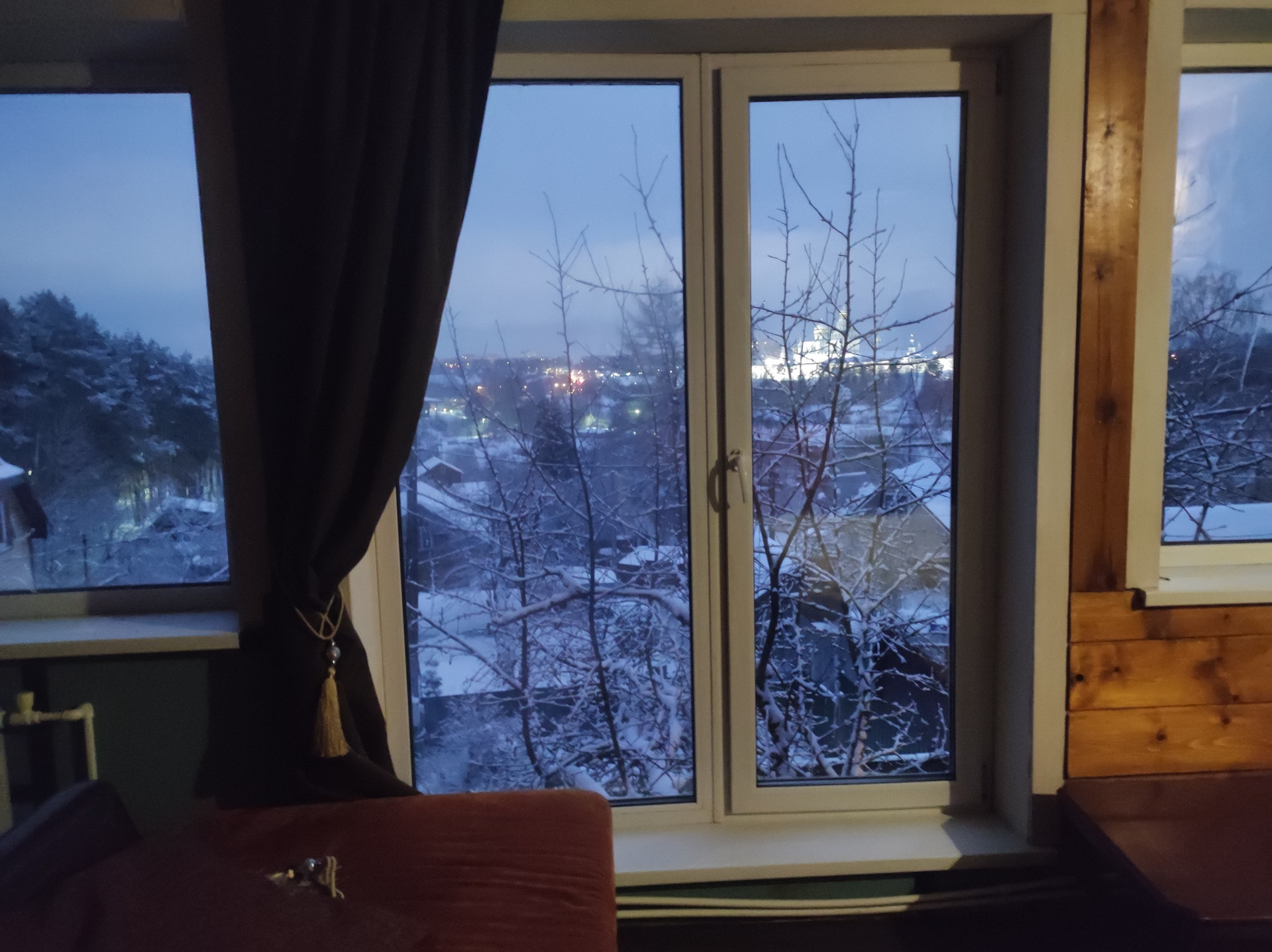 Монастырь и его парк смотрят в окна, десять минут ходьбы. Рядом лес с прочищенными тропинками в сосновый бор.