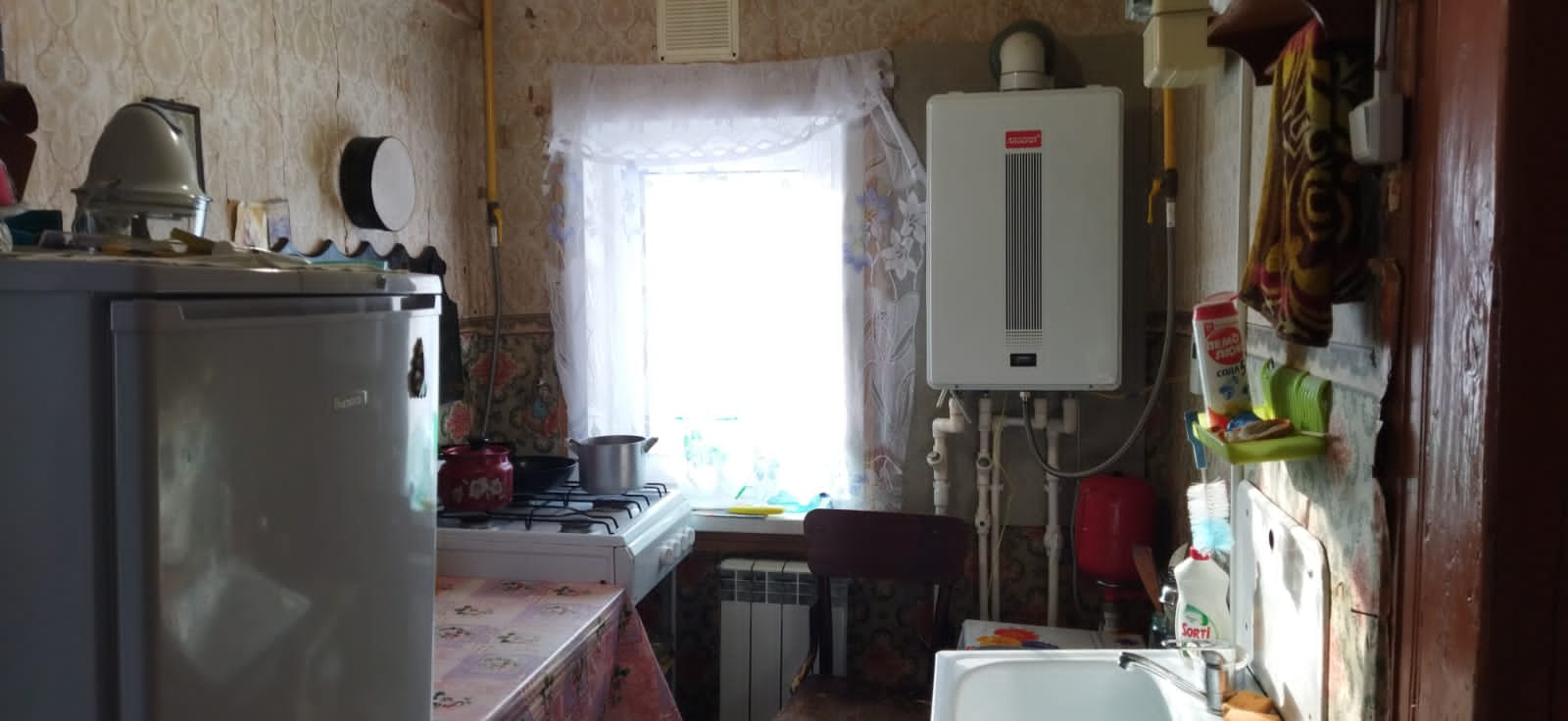 1216. Продаётся уютный дом 31 кв. м. на участке 7 соток, в г. Юрьев-Польский Владимирской области. Дом жилой, в очень хорошем состояние, все коммуникации центральные. В доме ванна, с\у, двухконтурный котёл, колонка для постоянной горячей воды. Участок на солнечной стороне, разработан и ухожен, подведена вода для полива.  Имеется подвал где хранятся заготовки, прекрасная терраса, где можно летом спать. Дом расположен в зелёной зоне города, соседи очень хорошие люди. Всё необходимое в шаговой доступности. Свободная продажа.