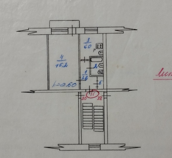 Балкон, лоджия 1 балкон