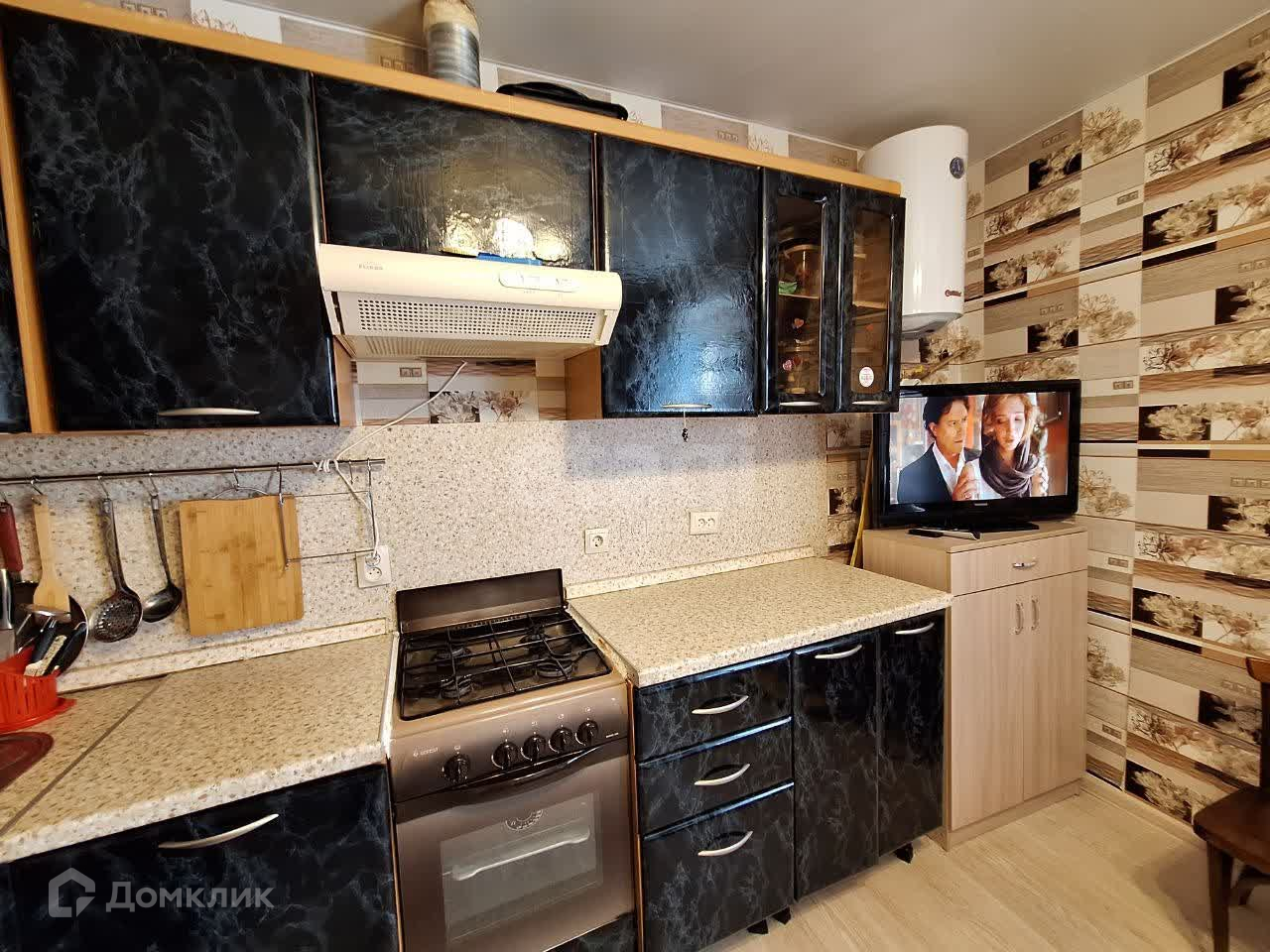 Кухня-гостиная имеет площадь порядка 14 кв.метров, что позволяет комфортно и готовить еду и смотреть телевизор (имеется в наличии) всей семьей за вечерним ужином. Большая площадь угловой столешницы подойдет любой самой прихотливой хозяйке. На кухне также расположен холодильник (остается) Индезит, телевизор, микроволновка, диван 3-х местный, и что особенно важно, отдельный водонагреватель.